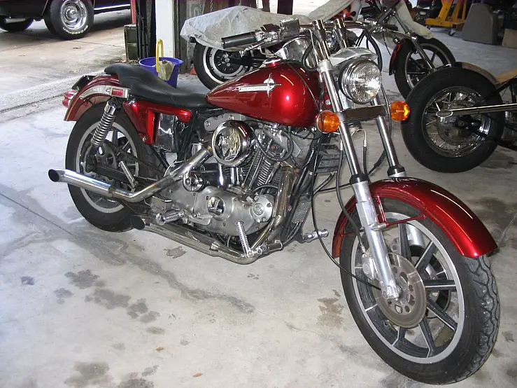 Up for auction is my 1980 Ironhead Sportster. The motor and trans are all original. 000cc. w/ a 4 speed tranny. The motor has under 20. 00 miles and tranny shifts fine. Orig. carb. clutch brakes. battery and controls are fairly new. Tires are real good. THE BAD is it smokes like crazy. so I stopped riding it. I think a lifter or valve is bad or both. I am selling it as is. or will rebuild the top end and ask at least $1000 more. This bike has custom tank. bars . eat. and other stuff. and is a great bike. Paint is Brandy Wine and looks great. Clean Florida title and still registered. Any questions. e mail or call 845 300 3126
