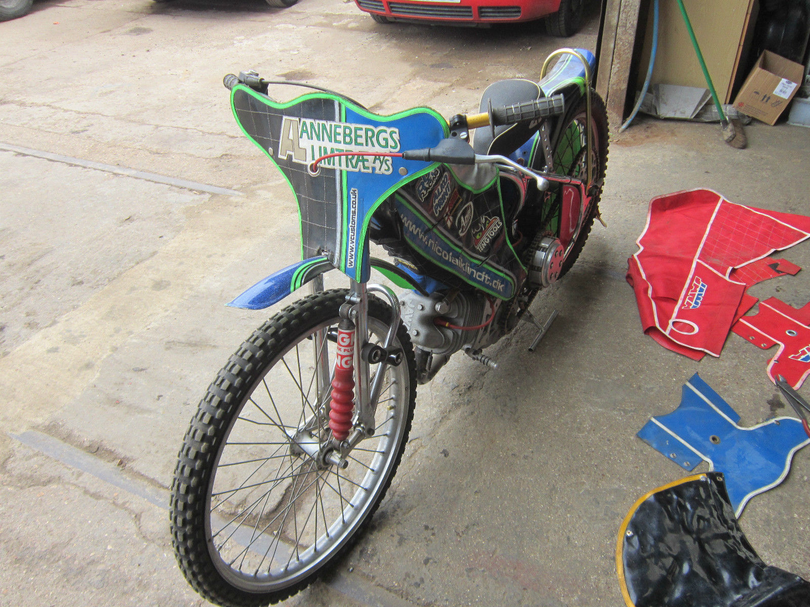 speedway bike in good working order its stood for about a year now so could probaly do with the carb setting up and cleaning out etc after a practice day at rye house found out that i lack all the skills and minerals to race speedway although it is an awfull lot of fun so reluctanly dicided to let it go and try somthing abit safer (sidecar racing) the bike comes with all the spares shown in the pics includeing some fuel to get you going. veiwing welcome any questions feel free to call on 07891194338 cash on collection