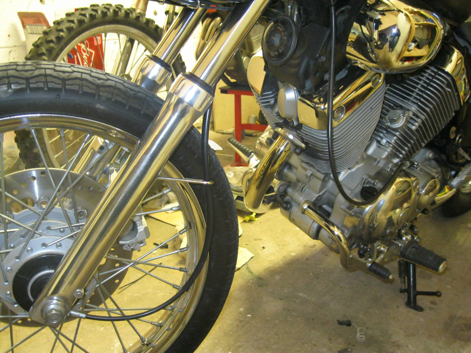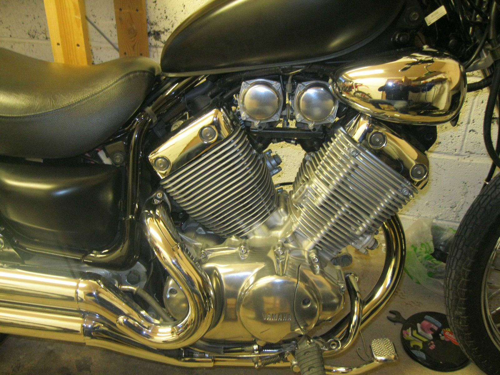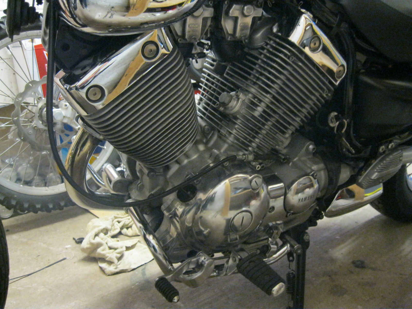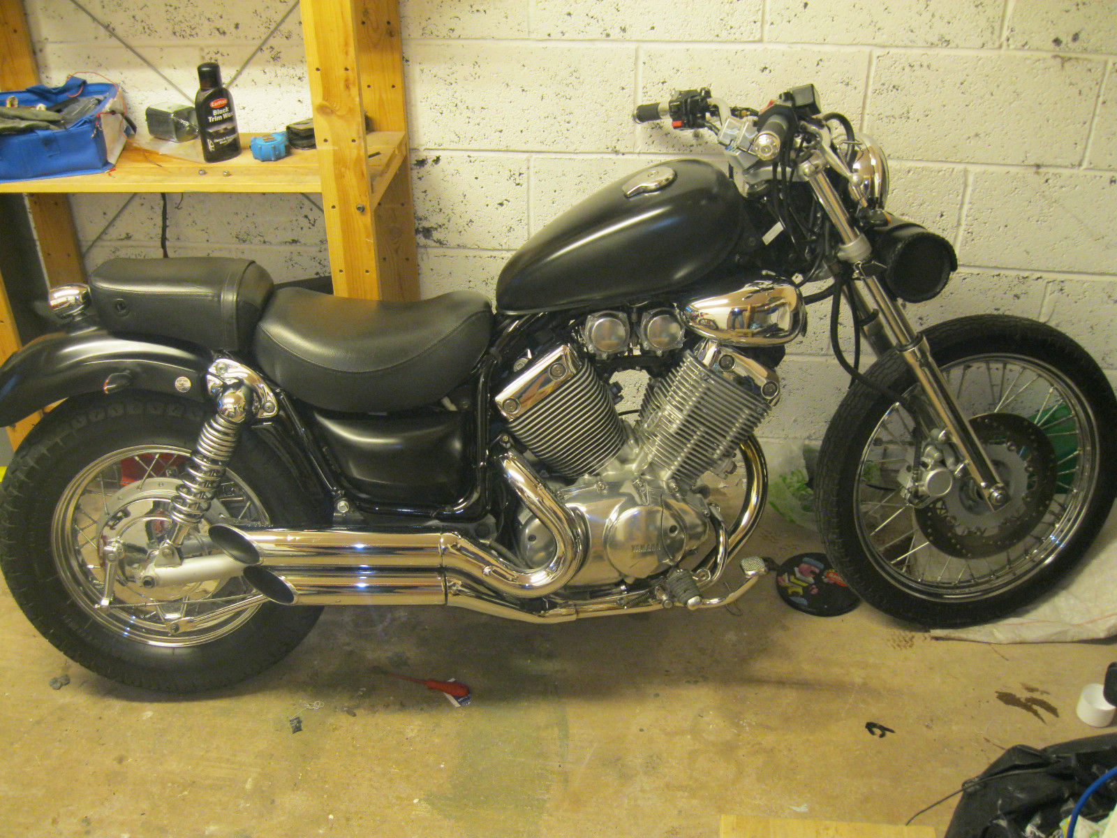 welcome to my auction for my YARLEY that is a yamaha virago that wants to be a harley. and to be honest if it was not for yamaha on the engine case it would have pulled it of. I have altered this bike into a mild bobber cruiser style. and it looks fantastic. you will be hard pushed to find a better looking virago 535. It has got stubby indicators and straight handlebars with a small round chrome brake light (suit the bike better) all unnescessary chrome has been removed. every where I go on this bike it gets admiring looks and glances. people who look the bike over do not believe it is 20 years old. I used to restore cars. and get more pleasure cleaning and maintaining the bike than riding it. in the last 2 months I have gone over the bike ready for selling. and carried out the following work. bike has covered 2 miles in this time. new engine oil and filter. new spark plugs. new front cylinder coil with lead and plug cap. new front brake disc and pads. completely strip the carburators totally cleaned and replaced a slightly worn diaphram in the front carb. set up and adjusted carbs it purs like a lion and starts first touch of the button. the chrome work on the bike is very good to excellent. and bike really stands out. the front forks have been stripped and highly mirror polished. this is a really nice smooth bike to ride. it is taxed until febuary and will come with 12 months MOT. im starting the bidding at ?1 NO RESERVE any one who is after a nice unmolested 535 need look no further speedo is showing 31000 kilometers but do not know if this is original to the bike because it was imported from abroad. where I do not know. but for the condition the bike is in I would be surprised if this milage is correct. everything on the bike works and looks as it should. if you would like to view or test ride or have a question please ask only down side to the bike is the fuel cap it is very slightly pitted on the chrome cap. these are only ?15 new so a simple swap if you wanted a really really mint bike.