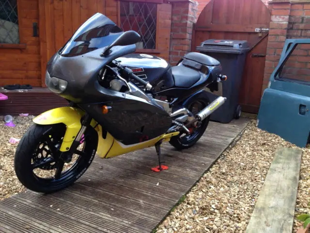 2005 APRILIA RS125 ?700 ONOThis bike is offered for spares or repairs. As the mot ran out in 2011. Since then the bike has been garaged. efore it was stored the breaks were stripped. leaned . new pads and fluid. Had replacement break light switch. New chain and sprockets. Wheel bearings. Good tyres. Engine runs well . ood gear box. plenty of compression. no rattles or knocks. Seats have been recovered. Full power with cdi mod/chip. No flaky paint on the wheels. This bike was in good working order before being garaged. the nose cone and side panels as photoed were removed for paint and repair. The panels have been at the painters for over 12 months. and have still not been painted. So i have had enough and collected them and now decided to sell. The side panel was plastic welded professionally by the painter and is strong and ready for prep. oes have arrow race exhaust on sky hooks for quick release. but stock end can as arrow end can was used on different bike. I have sold a few of these bikes over the last couple of years . nd this one was stood waiting for the panels painting i have taken parts off for other bikes. PARTS MISSINGL/H MIRROR. TANK LOCK. COMMON FAULT KEY SNAPS IN THE LOCK. STARTER MOTOR. THIS HAS BEEN TESTED IE WIRING AND 12VOLT FEED TO MOTOR MOTOR IS FAULTY ?25 NEW. FEW NUTS AND BOLTS FOR FARING. BENT GEAR LEVER. FF ANOTHER BIKE AS I TOOK THE GOOD ONE OF THIS. CAN BE STRAIGHTENED. NEEDS MOT. AIR FILTER AS IT HAD PIPER CROSS ON BUT REMOVED FOR OTHER BIKE. SO HAS STOCK AIR BOX BUT NO FILTER. NEW BATTERY. ALL IN ALL IS IN REASONABLE CONDITION . Just needs the above and paint if you wish . was quoted ?180 for the paint. Can be bump started runs good. breaks good head bearing wheel bearing all replaced i have receipts and v5 plus previous mots. Only 6 previous keepers. All lights etc work fine nice bike needs tlc/project. First to see will buy. viewing welcome cash on collection. collection only anymore info call Craig 07915467003.