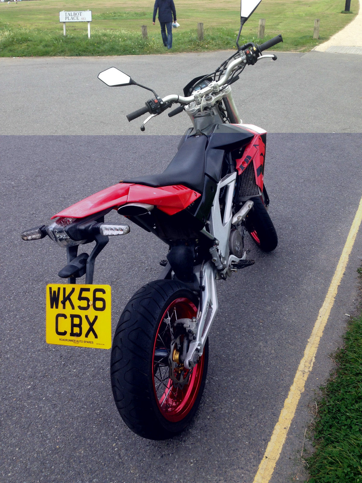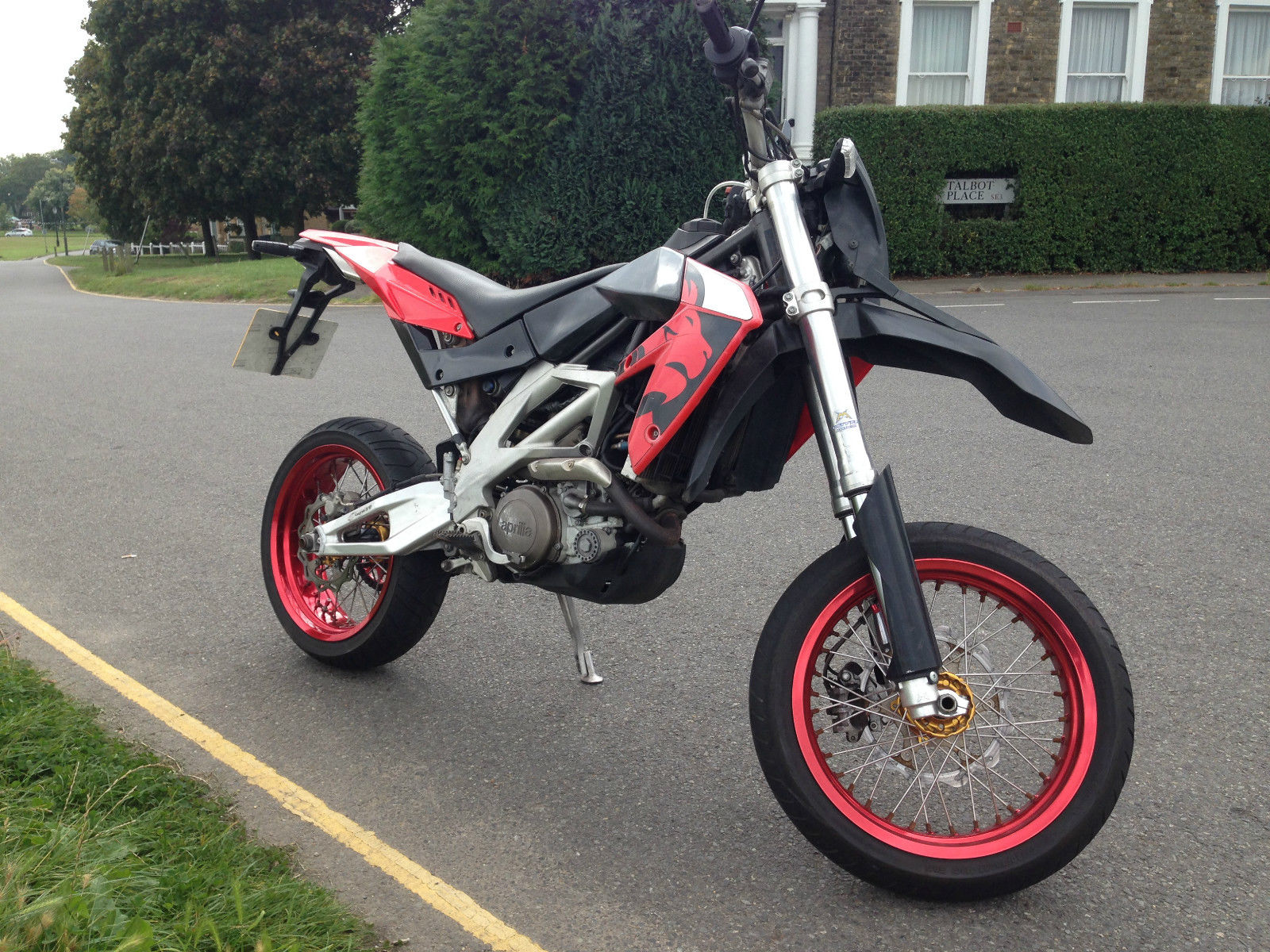 Hi. this is a listing for my 2006 Aprilia 450cc SXV with approx 2000 miles and 12 months MOTI am reluctant to sell this awesome bike. but as I have been looking to get something for touring I'm gonna need the space and can only really justify having one bike. Everything on this motorcycle is sound and in good condition. I don't make full use of it as I cycle to work. but I can assure you whenever I do go out on it I usually end up going the long way. It is an absolutely brilliant bike and I am definitely going to miss it hopefully I will have another one one day. TechnicalA first important thing to note about this particular SXV is that is HAS had the black sealant modification to the engine crankcase. This was done about 1000 miles ago now and so far the coolant and motor oil have run clear and good. I have fitted a slightly larger and lightly modified starter motor from an R6. importantly the SXV engine itself is completely unchanged. I was not satisfied with the original starter so I thought I'd try this mod and I can say it makes a big difference to the speed of the cranking which is very useful. If you ever need a new R6 starter all important parts will just bolt right on. as will the original starter which is new and included in the sale of the bike. I ran out room to add more photos on eBay but I can send some pictures of this mod if anyone is interested. The oil has been changed religiously. I may actually have some 10w60 to include with it. Lawn mower aint getting that stuff. Current coolant is Xstream G48 with de-ionised water like the manual says. I have also replaced the original plastic oil filter cover with an aluminium one which I believe was specified in one of the maintenance bulletins released by Aprilia. I put it through an MOT just before listing it so you have almost 12 months full MOT. but the TAX has run out. you can get a disc for £58/year for this bike. Currently tuned to Alice racing map and running standard exhaust. FairingsThe only problem with the bike is the rear fairings. As you can see in the photo there is some whiteness from being outside. this has only appear in the last few months. Replacements are available but I'm not too fussed about it. There is also a slight scratch where the bike has been lent over on the front left fairing. Oh yes and the chain may also benefit from being replaced as I tightened it not too long ago but it still rattles more than I like. That is total of all the problems with it. SparesI also have some spares I will include with the bike as I will obviously no longer be needing them:Spare original starter motorUSB laptop cable (was £200 new) - If you own this bike you MUST have this cable. it is essential for making all basic adjustments to the engine. and for checking parameters if you need to3 new oil filtersFlywheel removal toolHopefully that describes it fairly well if you have any questions please contact me by eBay or by phone 07759 430674. Ta. Bike is currently in South East London