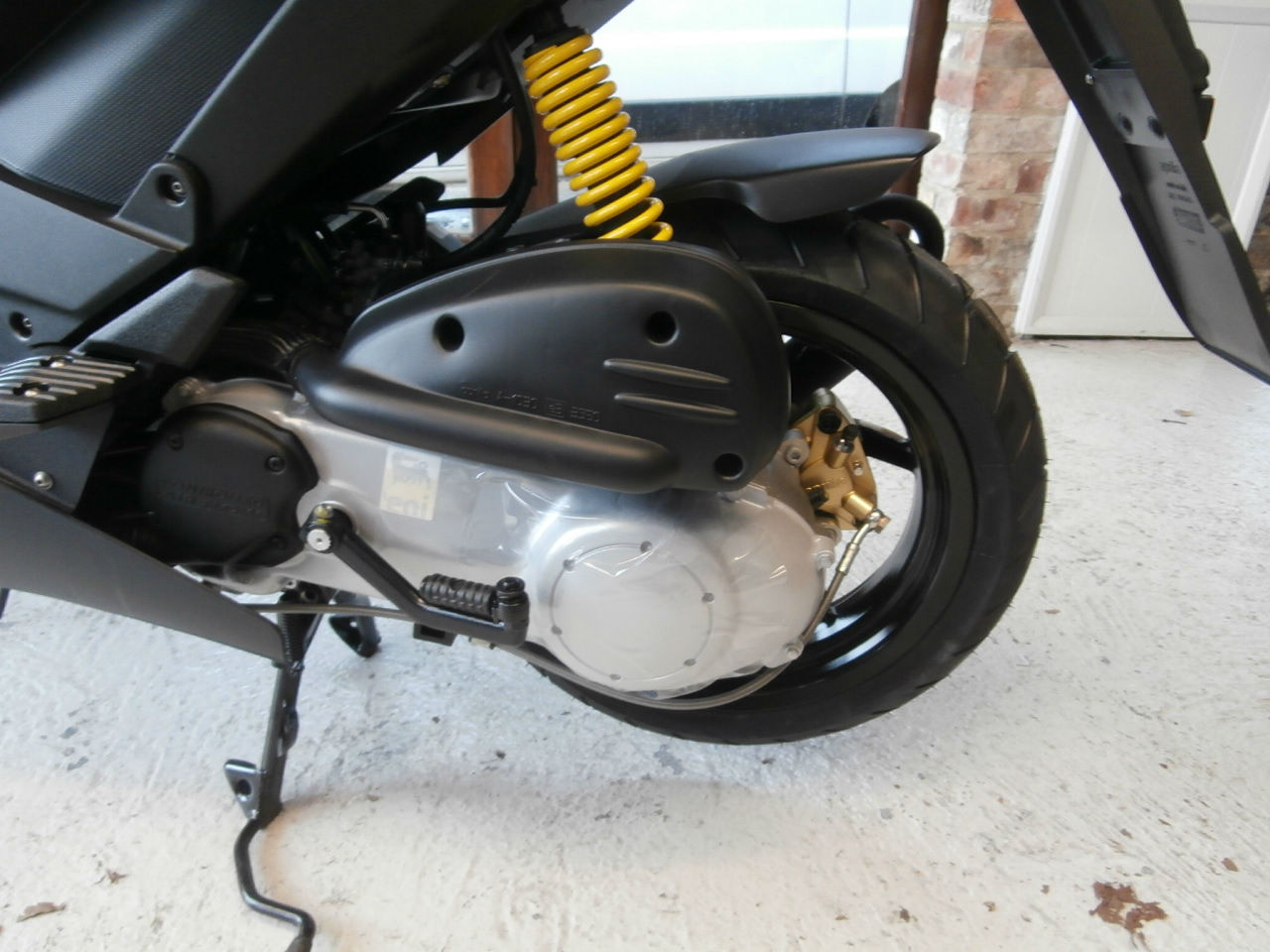 Now in stock in the new Mat Black. The best 50cc sports scooter available far superior to all other makes. stroke liquid cooled engine. front and rear discs 190mm with two piston calipers. 13" alloy wheels and tyres. silenced expansion chamber exhaust. 7lt fuel tank. rear race shock. For 0% finance. minimum deposit £500 over 24 months. Admin charge will apply. Contact us for further details. Email qrg@btconnect. com or tel 01536518319Finance deal 1. 99% base rate £2171 on the road. deposit £99. 00. 24 payments £96. 38 apr 13. 3%. total paid £2412. 12 or 36 months £65. 48 apr 10. 3%. total paid £2456. 28*Free delivery. depending on distance a contribution may be asked for.