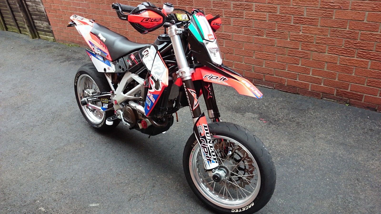 2007 Sxv 550 2008 Throttle bodies 2009 Headlight Carmichael protaper bars Pipercross air filter Datatool s4 alarm 15t/46t sprockets Front fork and swingarm sliders Foot peg sliders Enduro tail/light unit Circuit handguards with cycra bar clamps Metzeler ractec k1 front and rear . Good handling and fast supermoto oils and filter changed 254 miles ago log book . one key . larm fobNo P/X or swaps . cash on collection . questions welcome