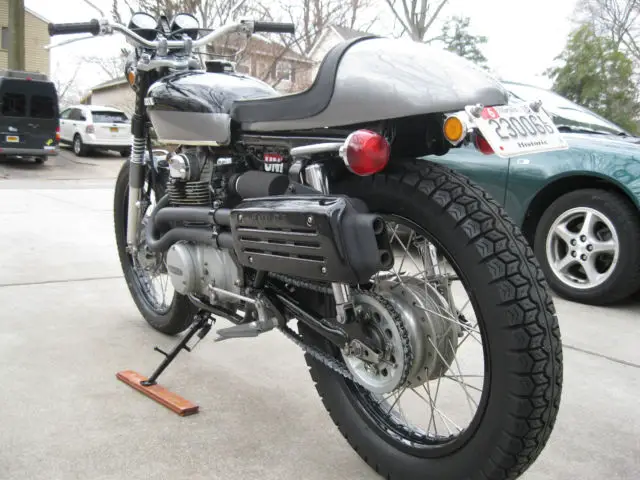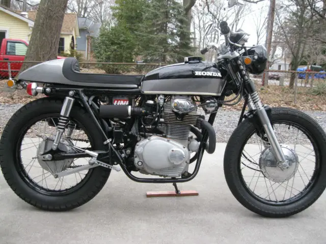 Attention collectors. new riders and seasoned bikers; Spring is FINALLY HERE! For your consideration is a 1972 Honda CL350K4 Caf? resto/mod. The K4’s are arguably Honda’s best year for their venerable 350 twin engine. which powered more road going Hondas than any other engine Honda ever sold. This bike is in Fabulous Condition. It has just undergone a meticulous restoration / mild customization. Since restoration. this CL has logged about 800 miles since restoration last fall and is in exceptional working condition. The superbike bend handle bar makes the seating triangle sporty. yet very comfortable for a caf? style bike. It’s not very often a completely sorted. comfortable and properly functioning turn-key Cafe comes around. so don’t miss out on your opportunity to own this wonderful CL350K4 Caf?. You won’t be disappointed! I’ve specialized on and have been restoring Honda 350 twins for decades. I don’t build any other brand or model bike and know these 350 inside and out. I only build a couple bikes per year and take my time to do them properly without cutting corners. Check out my feedback. I’ve sold lots of bikes on ebay to very satisfied buyers. This CL350K4 has been assembled with mostly OEM Honda original parts with a few mild caf? touches. What I have done is a full. down to and including the crank disassembly. inspection and reconditioning of the entire bike. The engine was treated to a . 25 overbore with new OEM Honda pistons and rings as well as a valve job. All seals and gaskets were replaced with new OEM Honda ones and everything functions as well as or better than new. Everything works as new including all electrics. even the stock Honda charging system charges perfectly (13. 2volts at idle and 14. 5 above 3. 00 RPMs) Bike is fully serviced and ready to ride anywhere. All adjustments have been made to Honda’s original specifications. /p> Restoration services completed within the last 6 months include: Chassis: 1972 CL350K4 frame and swing-arm All brackets have been removed for the stock foot pegs. center stand. seat. helmet holder. etc. Kickstand bracket and tail section brackets have been added All frame seams have been welded for increased torsional rigidity Frame and all brackets have been sandblasted and powder coated with new rubber shock bushings installed on the swing-arm. Front forks and have been fully disassembled cleaned. and polished with new seals and oil Front and rear hubs have been stripped. cleaned. polished and re-laced with new spokes to black powder coated rims. The rear rim is wider than stock DID aluminum rim (2. 15 x 18) It has a CB350K4 gas tank which has just been professionally painted and cleared and is perfect. petcock is rebuilt with all new seals and filters Tail section is a period race piece which has been fitted with a professionally upholstered seat attached to a custom made compression fitted aluminum seat pan and painted to match the tank Steering head bearings and swing-arm bushings have been removed. cleaned. inspected. greased and reassembled Front fork brace has been powder-coated black and retained for proper fork bracing and rigidity Rear inner fender has been cut down. powder-coated black and retained to prevent road debris from damaging electrics and carburetors. Power Train: CL350K4 motor Motor has been fully disassembled down to the crank. cleaned inspected and reassembled with all new OEM Honda gaskets and seals. During the rebuild. new OEM Honda 1st over pistons and rings were installed. The kick-starter and associated bits have been removed and an aluminum block off plug has been machined and interference fit into the kick-shaft hole in the right side cover Cylinders were professionally bored. Head has had a full valve job and has been decked very slightly by my machinist. I’ve put about 800 miles on this motor since the rebuild. It runs flawlessly and feels a tad stronger than stock. Engine cases and head were glass bead blasted and clear coated with high temp clear. Side cases were glass bead blasted painted and cleared. Carburetors are stock OEM Honda SL350K0 Kehins which have been completely disassembled (including all needle jets. emulsion tubes. butterflies. etc. cleaned and rebuilt with All new OEM Honda rebuild kits. installed and tuned properly. New Unit filters installed onto stock OEM Honda velocity stacks (which were removed from the stock airboxes. The bike runs and carburates perfectly in every way. Exhaust system is a stock OEM Honda CL350 K1 unit which has been ceramic coated satin black with a Gloss black powder coated heat shield All control cables have been replaced with new high quality aftermarket black units. They are of proper length. properly routed. lubricated and work perfectly. Electric: Stock OEM Honda electrics in as – new condition New Battery New Aftermarket Rectifier Entire electric system (and I mean everything) has been completely disassembled. cleaned. inspected and reconditioned where necessary. Everything functions as new. Wiring harness was a low mile takeoff from 20 years ago which was stored properly and looks like a NOS piece A custom sub-harness was made for the tail section using OEM type bullet connectors. If you didn’t know otherwise. you’d think it was an OEM Honda harness Starter motor was disassembled cleaned inspected and reassembled Rear turn signals have been disassembled. cleaned inspected and converted to dual element tail/brake lights. LED tag light bolts have been fitted and properly wired Headlight ears are from a 1971 SL350K1 (which has a been modified slightly to fit the CL350 triple tree spacing) Horn. Stator. Regulator. Coils. ignition switch. handlebar switches. and turn signal relay are Stock OEM Honda parts that have been completely disassembled. cleaned. inspected. and reassembled and all work as new. New plugs and Points installed and adjusted. Gauges are OEM Honda in good condition Controls: New Aftermarket Superbike handlebar properl