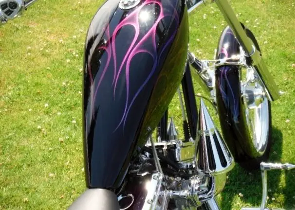 THE BIKE IS BLACK WITH CHAMELEON FLAMES. IT IS ALWAYS GARAGED AND NEVER DRIVEN IN THE RAIN.BUYER IS RESPONSIBLE FOR SHIPPINGAFTERMARKET PIPESAFTERMARKET GRIPS AND PEGSAFTERMARKET OIL COOLER AND STASH TUBEAFTERMARKET SISSY BARAFTERMARKET CHROMELENS TURN SIGNALSAFTERMARKET SPIKEAIR CLEANERAFTERMARKET MIRRORSAFTERMARKET SEAT