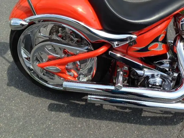 2007 Big dog K-9. 8423 miles. Purchased new in November 2008. One owner bike. Garage kept. never in rain. 117c. i. S&S engine. Baker 6 speed RSD transmission. Performance Machine brakes. Vance and Hines exhaust. and Avon 300 mm rear tire. The bike is comfortable to ride and turns heads everywhere. Metal flake green color that big dog calls shimmering shamrock. New battery installed this year. New front tire last year with less than 200 miles on it. Passenger seat included. windshield on bike. and the added switchblade pegs have a heel rest for your foot. Rear tire needs replacement. Big Dog Service manual is included. I have an 18 month old baby. so the riding stopped almost three years ago. Bike is for sale locally also.