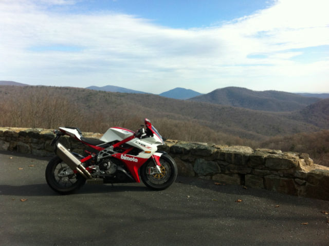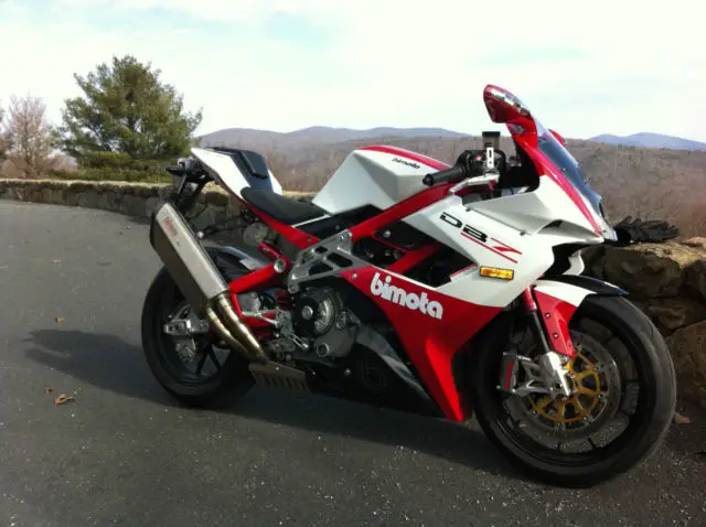 If you are looking, presume you know the bike and that it had a $35k retail and also know about the bike so I won't go into the collectability, erformance, tc. etc. Google it. I purchased the bike new in 2010 and it has been part of my collection of ten bikes. All are stored indoors in conditioned facility. I am a 53 year old rider with 35 years experience. All maint. done yearly- brake fluids replaced, il (Motul) always ahead of schedule. Bike is in excellent condition, nd comes with Bimota cover, ook, eys, nd front AND rear Pitbull paddock stands. No issues whatsoever, uns perfectly. 600 mile initial service was done by dealer. I have included a couple photos of my bikes so you can see the caliber of my toys and how I keep them. Also, ou might see the added tail light on one of the photos that the dealer (I presume) added for US DOT regs. It looked silly and I removed it immediately, o tail is cleaned up and stock as it is in Europe.