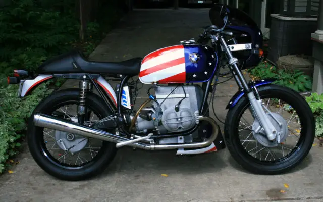AWESOME BIKEBMW R 60/5 Boxer Cup America Cafe Racer ReplicaGreat Condition. very reliable. Fairings . fenders and Gas Tank have been professionally custom painted red. White & Blue. Stars are under the Clear Coat. Beautifully Done. Everything Seems to work as it should. All Electrics Good. Starts. Runs. Shifts Well. This is a great bike. Please see the pictures and the You Tube Video. youtube. com/watch?v=jVE7UiGpJjs Currently. the battery seems a little weak. You can see by the You Tube Video. that it starts easily with the kick starter. If the bike gets $ 200 above my reserve. I'll put a new battery in it. There is no way that I would sell this. except that I need daughter college money. Let me know if you have any questions. I will have this for Sale Locally. So. I reserve the right to end this auction early.