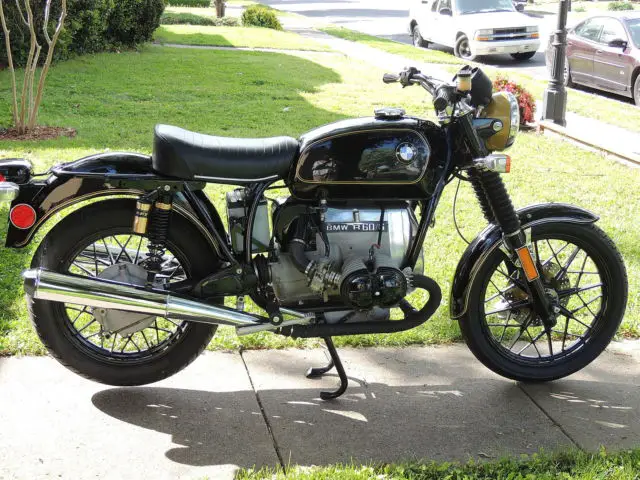 BMW Custom 1976 R75/6 Frame 1976 R60/6 Motor******************* ******************** I started building this bike. about 4 years ago. with a lot of help from a friend of mine who is an expert BMW Airhead mechanic. My intentions was to build a bike for my son. but after it was finally finished my wife and I realised that maybe that wasn't a good idea. So he got a car instead. The project started with a titled 76 R75/6 frame and a rebuilt R60/6 motor. Mikuni carbs were installed Motor was low mile (around 25. 00). it was dismantled and a complete rubber seal and gasket kit was installed. valves and seats were reworked. cylinders and pistons were in great shape. Alternator. Timing and Starter covers were polished. The frame. subframe. swingarm. fork lowers. wheels. nbsp;rocker covers. airbox covers and centerstand were Powdercoated Black. has brand new tires and tubes. The headlight bucket and front brake rotor were Powdercoated Gold. Aluminum Turn Signals were polished. Gas Tank and Fenders were painted gloss black. pin striped in gold and clear coated. Has brand new /5 Gas tank emblems and solo seat from S. Meyer in Germany. Brand new Mufflers. New Piggyback Shocks. New Bosch Headlight and Chrome Ring. Custom made front brake line. New BMW rubber gators************** HAPPY BIDDING AND GOOD LUCK! Bike must be picked up in Paducah. Ky Shipping is the buyers responsibility******************** Payment must be recieved within 5 days of auction's end SELLERS LIST