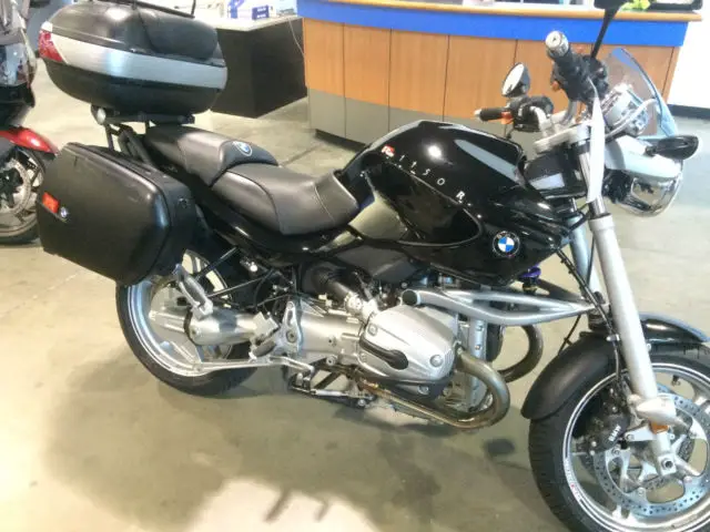 Motorcycles of Dulles is proud to present this Immaculate Certified Pre-Owned 2004 BMW R1150R Night Black motorcycle: Must see! Great value! Meticulous prior owner. Comes w/excellent service records. ABS city side bags Givi trunk w/luggage rack auxiliary lights Michelin PR4GT tires. engine tip guards throttle lock heated grips. Terms of Sale Overview: As this motorcycle is also for sale in our showroom we reserve the right to end this listing at anytime should the vehicle no longer be available for sale. The following terms of sale apply to all of our eBay motorcycle listings. All motorcycle sales are subject to a $384.00 processing fee and a minimal local gross receipts tax. (Usually between $8 and $20) The winning bidder must contact us immediately at auction end to provide appropriate contact information. If outside of business hours this can be done via email through the eBay listing. A non-refundable partial payment of $500.00 (Five Hundred Dollars U.S.) is required immediately to close the auction and to secure the vehicle. Buyer agrees to pay the remaining balance due (including all applicable fees and taxes) within 7 days of the close of the auction. All financial transactions must be completed and funds cleared before the vehicle can be released. Winning Bidder is responsible for all taxes title and tag fees associated with the home state of the bidder. This Motorcycle has completed our Certified Pre-Owned list which includes but not limited to the following: • Oil and Filter Change • Check and Top off all Fluids • Tire Pressure Reset • Lube Chain (when applicable) and Adjust • Virginia State Inspection • Road Tested for proper operation • Accessory Power Pigtail added As such this motorcycle qualifies for our exclusive 30 Day/1000 mile limited warranty Please come see one of our Sales consultants for more details. We are a certified manufacturer approved BMW and Triumph repair facility but we do work on all makes and models. We offer pickup and delivery and winter storage! CALL TODAY TO SCHEDULE YOUR SERVICE APPOINTMENT! 855.330.1200 Ask for Mike or Jessica! NEED PARTS? Call and ask for Roberto! NEED APPAREL? Call and ask for Laura! 5% DISCOUNT for first time customers for service parts and accessories. Current ADDRESS: 22890 Quicksilver Drive Suite 189 Dulles VA 20166 HOURS: TUESDAY - FRIDAY 10AM TO 7PM SATURDAY 9AM - 4 PM We trade all makes and models AND buy excellent condition previously owned motorcycles! Sale Price does NOT include taxes freight and fees.