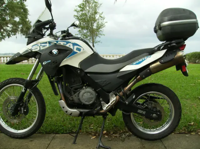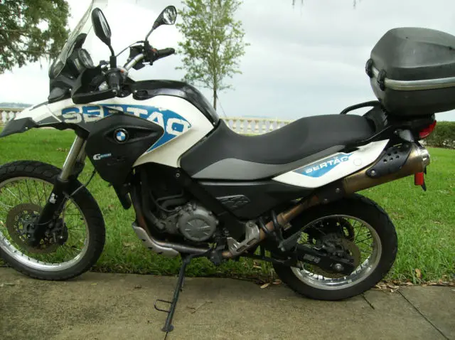 BMW G650GS Sertao (2012) w/ 48,800 miles, top case, nd center stand. This bike will do 85 mph all day at 65 mpg and then go off road more capably than the much larger BMW GS’s. The motorcycle runs beautifully and is in great condition. The first eight services have been completed and archived digitally by authorized BMW Dealers. The Sertao will run forever when properly maintained, s this one has been. The high mileage is a consequence of several long road trips, ence, entle miles. The motorcycle has been garage kept, nd it has never been dropped. In May of 2015 the side stand mount broke and the bike received several scratches on the left side fender and tank. The scratches are not easily noticed and are expected wear for a 3 year old motorcycle. There are several photos. All repairs have been completed. There are also some touch ups on the passenger handles from bungees (photos included). The buyer is responsible for shipping from Greensboro, C where the bike is now located. The bike is titled and registered in my name in Florida. The buyer must make a $500 down payment within 24 hours and full payment is due within 7 days. Thank you for looking.