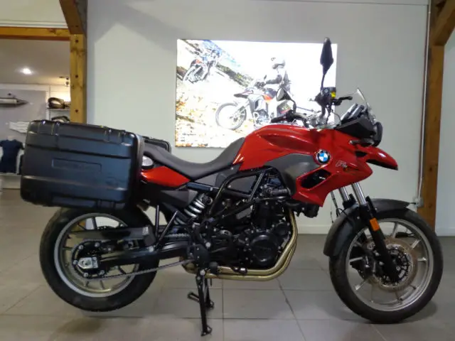 Call us today: (603) 964-2877 Vehicle Details Year:2014 Make:BMW Model:F700GS Remarks:LOW SEAT/BAGS Mileage:543 Exterior Color:RED APPLE MET VIN:ZF85488 Type:Dual-Sport Engine Size(cc):700 Stock Number:8164 For Sale By:Dealer Title Status:Clear This is an as-new standard suspension F700GS with a low seat. We sold it new and it is a one-owner bike and the 600 mile running-in service has been completed. The factory build consists of: