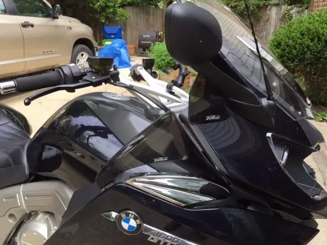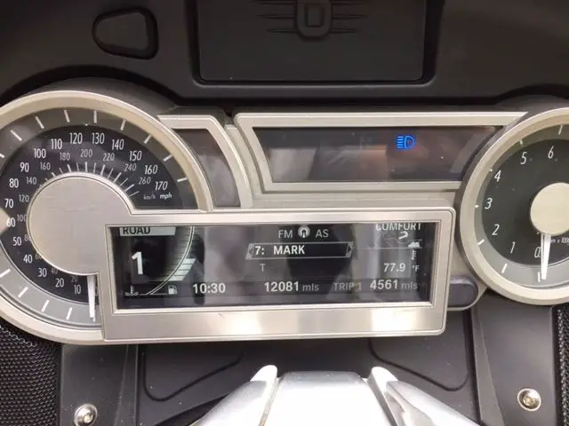This bike has it all, xcept the ludicrously expensive BMW GPS (easier to use your cell phone!) ESA, daptable headlight system, PMS, lectric screen adjustment, BS, ruise, ar risers, eated grips and custom Corbin seat, eroWings.