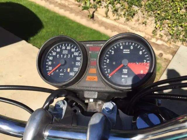 Very clean 1977 BMW R100/7. Original numbers matching with only a few modifications to stock condition. Starts fine with a smooth idle, uns and pulls, hifts well. Everything mechanically is functional. Paint is in good condition with some minor chips and scratches (not show quality). Both tires have good tread remaining. Comes with 2 seats (original bench style & king/queen), ool set, ir pump,and two service manuals.