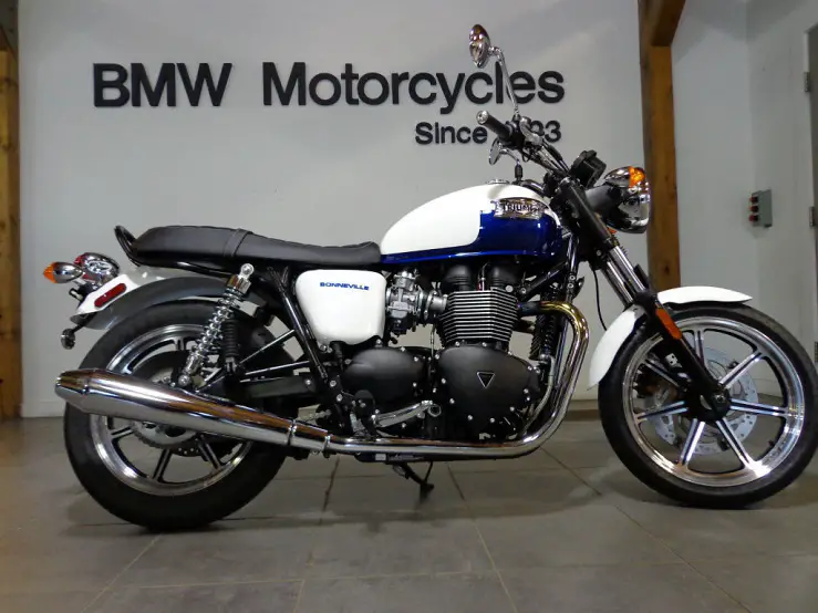 MAX BMW Motorcycles - NH View Our Other Listings           Contact Us 2014 TRIUMPH BONNEVILLE w/LOW MILES!@ MAX BMW NH See additional pictures below. MAX BMW Motorcycles - NH 209 Lafayette Rd. Route 1North Hampton. NH 03862 View Map Call us today: (603) 964-2877 Vehicle Details Year:2014 Make:TRIUMPH Model:BONNEVILLE Mileage:283 Exterior Color:WHITE-BLUE VIN:T645883 Type: Engine Size(cc): Stock Number:7168 For Sale By:Dealer Title Status:Clear Vehicle Description