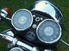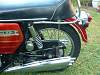 The paint and bodywork on this bike is all original, s is the seat upholstery. It is "nicely patina'd" and shows some wear. There is some worn off paint on theside covers and fenders as shown, lus a very small dent/chip in the top of the gas tank near the filler. There is a crack in the speedo lens. The original seatupholstery has a couple very small tears, ut the foam and vinyl is still soft and supple. The chrome is very nice, ith no pitting except on the shock springs and turn signals. Cosmetically, he bike could (and should, n my opinion) be left as is-it has a wonderful look. Tires are Dunlops with lots of tread, owever, hey are older and must be replaced prior to any road use.