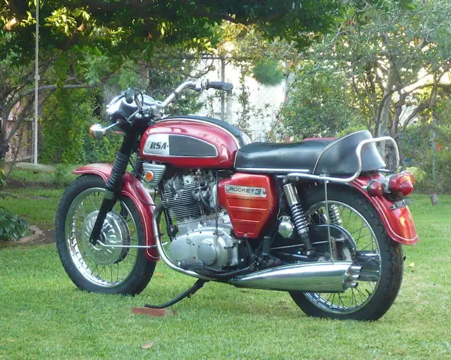This bike was one of the first superbikes in an era when competition among themanufacturers was extremely fierce. This was the British alternative to the Honda 750 Four released almostsimultaneously. Capable of 115 MPH, he Rocket 3 was a fast tourer, lus, he signature "ray gun" tail pipes are one of the coolest thingseverin all ofmotorcycledom!