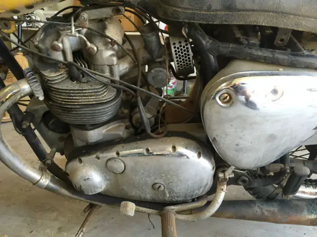Hey everyone. This is a 1960 A10 650 BSA motorcycle. It was my fathers (he was the original owner) and he said it runs. But he has not tried to start it in about 20 years. Because it has not been started in a while I don't want to try as it prob needs to be lubed up and checked inside before you kick it over. But it does kick over. It has all original parts. I believe the handle bars, as tank and rear fender are not original but they are 1960s original. I do have the original front chrome fender but its not on the bike. Don't know the mileage because it has no speedometer. This bike needs some love and restoration.