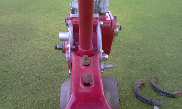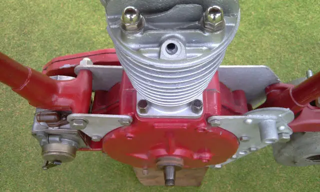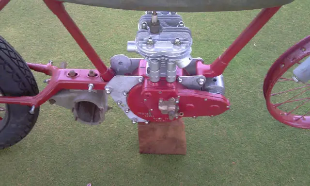 What appears to be missing:Footpegs. Gear shift lever.Gearboxcomponents. Oil pump for gas tank. Brake lever.Carburetor. Chain guard. Kick lever. Front and rear fenders. And other miscellaneous items.