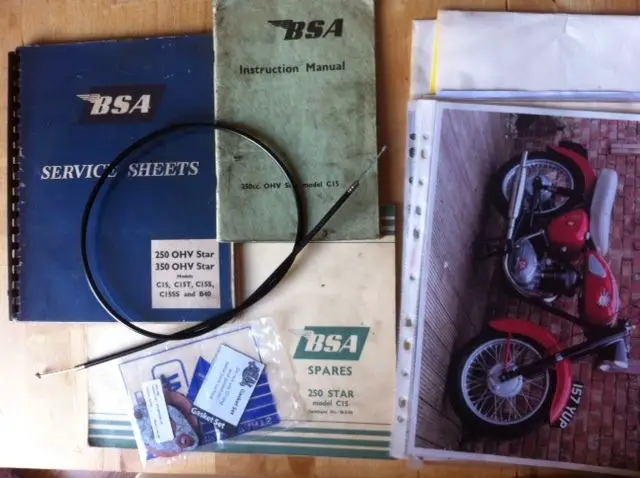 BSA C15 250 Star - 1960This is the Perfect Project Bike for BSA/Vintage Enthusiasts or someone who wants to re live their youth. nbsp; as you can see from the photos it is in need of a loving complete restoration. which I have been unable to find the time for due to a Cafe racer rebuild. The bike is currently taxed and insured . he Bike is Tax exempt due to its ageThe restoration pack that comes with the bike is very unusual even rare I have genuinely spent loads of time researching and collecting everything needed to complete this restoration as follows:Original BSA Owners ManualOriginal BSA Service Sheets (Very Rare)Official BSA dating certificate (its has matching frame with its original motorOriginal BSA Spares Manual( Very Rare)Number Plate Authorisation certificateV5Extras include magazine articles. wall servicing poster. etcMilage 39. 00 shown on the clockAdditional Extra'sA new set of AMAL Carburettor seals New Throttle Cable unusedSmall can of gloss black enamel paint I have put a very reasonable starting price and reserve on the Bike of £1299. 99. a penny more will win the complete lot. I am happy to answer any questions on the bike through ebayPlease note I will not negotiate outside of the auction. so please dont waste any of your energy trying to. The bike is listed elsewhere and may be pulled from the auction unless the buy it now option is chosen.