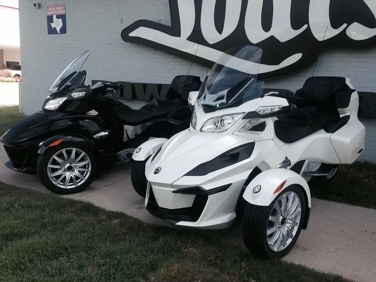 Buy from Louis Powersports. the largest Can-Am Spyder dealer by volume in the world. We have between 75 - 100 Spyders in stock at all times Visit Louispowersports. com for additional information on all of our vehicles. Free Assembly and PDI inspection. Texas residence are responsible for sales tax and state fees. Please call to check current inventory before committing to buy. A deposit of 500 dollars is required to hold any particular unit.  Standard Features:  Spyder RT Features     NEW Rotax 1330 ACE in-line 3 cylinders. high torque engine        NEW 6-speed transmission. semi-autoh with reverse        Vehicle Stability System with ABS. traction control and stability control        NEW ECO?„? mode smart assist        NEW Ultra comfort touring saddle and driver backrest ready        Adjustable passenger footboards        41 gal. (155 l) of storage        12-spoke. Metallic Silver front wheels        AM/FM audio system with iPod integration cable and independent passenger audio controls        Anti-theft system        NEW Front design        Dynamic Power Steering        Unique suspension geometry        NEW SACHS shocks        Premium color digital gauge        NEW 1. 00W alternator        Comfort features like electronic cruise control. heated rider handgrips. adjustable electric windshield and more        Windshield: Touring - electric adjustment        Wind Deflectors: Standard        Cruise Control: Electronic        Seat: Ultra comfortable with lumbar support and passenger backrest        Rider Heated Grips: Standard        Audio System: AM/FM audio system with iPod integration cable and 4 speakers        Power Outlet: 12V power outlet        Metallic Silver Trims:           Rider footpegs           Adjustable passenger footboards and footpeg support           Handlebar           Rear sprocket wheel           Rront and rear shocks springs           Exhaust tip and heat shield     Safety and Security     SCS: Stability Control System        TCS: Traction Control System        ABS: Anti-lock Braking System        DPS?„?: Dynamic Power Steering        Anti-theft System: Digitally Encoded Security System (D. E. S. S. ?„?)  Manufacturer   Can-Am    Model Year   2014    Model   Spyder?® RT SE6    MSRP   $24. 99. 00*    DIMENSIONS   Length   105 in. (2. 67 mm)    Height   59. 4 in. (1. 10 mm)    Width   61. 9 in. (1. 72 mm)    Weight   1. 12 lbs. (459 kg)    Ground Clearance   4. 5 in. (115 mm)    Wheelbase   67. 5 in. (1. 14 mm)    Seat Height   30. 4 in. (772 mm)    ENGINE   Engine   Rotax?® 1330 ACE?„? in-line 3-cylinders    Horsepower   115 hp (85. 8 kW) @ 7. 50 rpm    Bore x Stroke   3. 31 x 3. 14 in. (84 x 80 mm)    Torque   96 ft. lbs. (130. 1 Nm) @ 5. 00 rpm    Compression Ratio   12:1    Carburetion   Electronic fuel injection and electronic throttle control    Fuel Tank Capacity   6. 9 gal. (26 l) Reserve: 1 gal. (3. 8 l)    Cooling   Liquid    DRIVETRAIN   Transmission   6-speed semi-automatic with reverse (SE6)    BRAKES/WHEELS/TIRES   Brakes   Foot-operated. hydraulic 3-wheel brake distribution system Front: 270 mm discs with Brembo 4-piston fixed calipers Rear: 270 mm disc with Brembo 1-piston floating caliper Parking: Electro-mechanical    Wheels   Front: Metallic Silver 12-spoke. 15 x 5 in. (381 x 127 mm) Rear: Metallic Silver. 15 x 7 in. (381 x 178 mm)    Tires   Front: 165/55 R15 Rear: 225/50 R15    ELECTRICAL   Lighting   2 halogen headlamps (55W)    Instrumentation   Premium Color Digital Gauge: Digital speedometer. tachometer. odometer. trip and hour meters. gear position. ECO mode smart assist. temperature. engine lights. electronic fuel gauge. clock    OPERATIONAL   Capacity   Maximum Vehicle Load: 494 lbs. (224 kg) Total Storage: 41 gal. (155 l) Towing: 400 lbs. (181 kg)    Suspension   Front: Double A-arm with anti-roll bar; SACHS shocks; 6. 85 in. (174 mm) travel Rear: Swing-arm; air preload SACHS shock; 6 in. (152 mm) travelÂ
