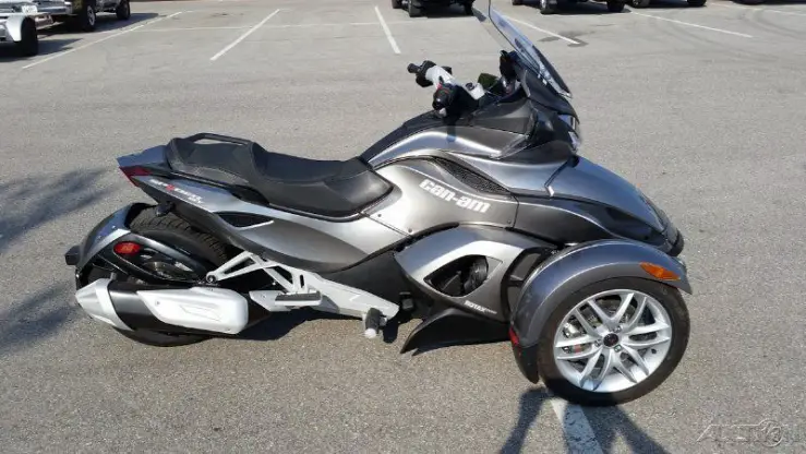 Listing by Auction123. com copyright Auction123. Inc. Mid-South Motoplex - 730 Economy Dr Clarksville. TN 37043-2429 - (931) 368-0237Can-Am Spyder ST SM5 (manual transmission)NO Hidden Cost ! Click here for an XL view of the above Image   PrevNext  1 2 3 4 5 6 7 8 9 10 DescriptionBasic InformationType: Sport TouringMileage: 4916Title: ClearCondition: UsedVIN: 2BXNCAC12DV000463Stock Number: U10035Trim: STModel: SpyderMake: Can-Am?„?Year: 2013DrivetrainNumber Of Speeds: 5Primary Drive (Rear Wheel): BeltTransmission: ManualSafetyHeadlightFuel Level WarningRearview MirrorsTemperature WarningOther InformationBelt GuardHeel GuardsHelmet StorageLockable StorageLower FairingSide CoverWarrantyExisting Warranty: YesChassis & SuspensionFrame: SteelFront Adjustable Fork Pre-LoadFront Suspension Type: Independent Double A-ArmFront Travel (in): 5. 9Front Travel (mm): 151Number Rear Shock Absorbers: 1Rear Adjustable Shock / Spring Pre-LoadRear Suspension Type: Twin Sided Swing ArmRear Travel (in): 6Rear Travel (mm): 152Steering DamperComfortDigital InstrumentationTrip OdometerEngineBore (in): 3. 82Bore (mm): 97Carburetion Type: Fuel InjectedCompression Ratio: 12. 2:1Cooling System: LiquidCylinders: 2Engine Brand Name: RotaxEngine Disp. to Weight (cc): 1. 16Engine ImmobilizerEngine Size (cc): 998Engine Size (ci): 60. 9Engine Stroke: 4-StrokeEngine Type: V TwinFuel Capacity (gal): 6. 6Fuel InjectorFuel Injector Size (mm): 51Fuel Requirements: Mid GradeFuel Type: GasHorsepower: 100Horsepower (kW): 74. 5Horsepower RPM: 7500Starter: ElectricStroke (in): 2. 68Stroke (mm): 68Torque (Ft Lbs): 80Torque (Nm): 108Torque RPM: 5000Valve Configuration: DOHCValves: 8Valves Per Cylinder: 4BrakesABS BrakesFront Brake: Dual Hydraulic DiscFront Brake Diameter (in): 10. 6Front Brake Diameter (mm): 270Linked Brake System Front to RearRear Brake: Hydraulic DiscRear Brake Diameter (in): 10. 6Rear Brake Diameter (mm): 270SpecificationsBody Material: PlasticDry Weight (kg): 392Dry Weight (lbs): 864Front Tire (Full Spec): KR21 165/55 R15Front Tire (Inches): 15Front Tire Aspect Ratio: 55Front Tire Width: 165Front Wheel Width (in): 5Fuel Capacity (liters): 25Ground Clearance (in): 4. 3Ground Clearance (mm): 110GVWR (kgs): 591. 5GVWR (lbs): 1304Height (inches): 52Height (mm): 1332Length (inches): 105Length (mm): 2667Payload Capacity (kgs): 200Rear Tire (Full Spec): KR21 225/50 R15Rear Tire (Inches): 15Rear Tire Aspect Ratio: 50Rear Tire Width: 225Rear Wheel Width (in): 7Seat Height (inches): 29Storage Capacity (cuft): 1. 9Tube / Tubeless: TubelessWeight Capacity (lbs): 440Wheelbase (in): 67Wheelbase (mm): 1711Wheels Composition: AluminumWidth (inches): 59Width (mm): 1506SpeedometerTachometer ContactTerms of Sale: