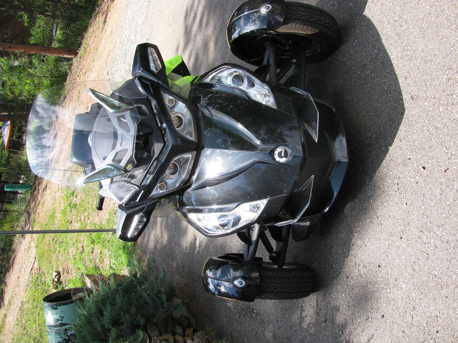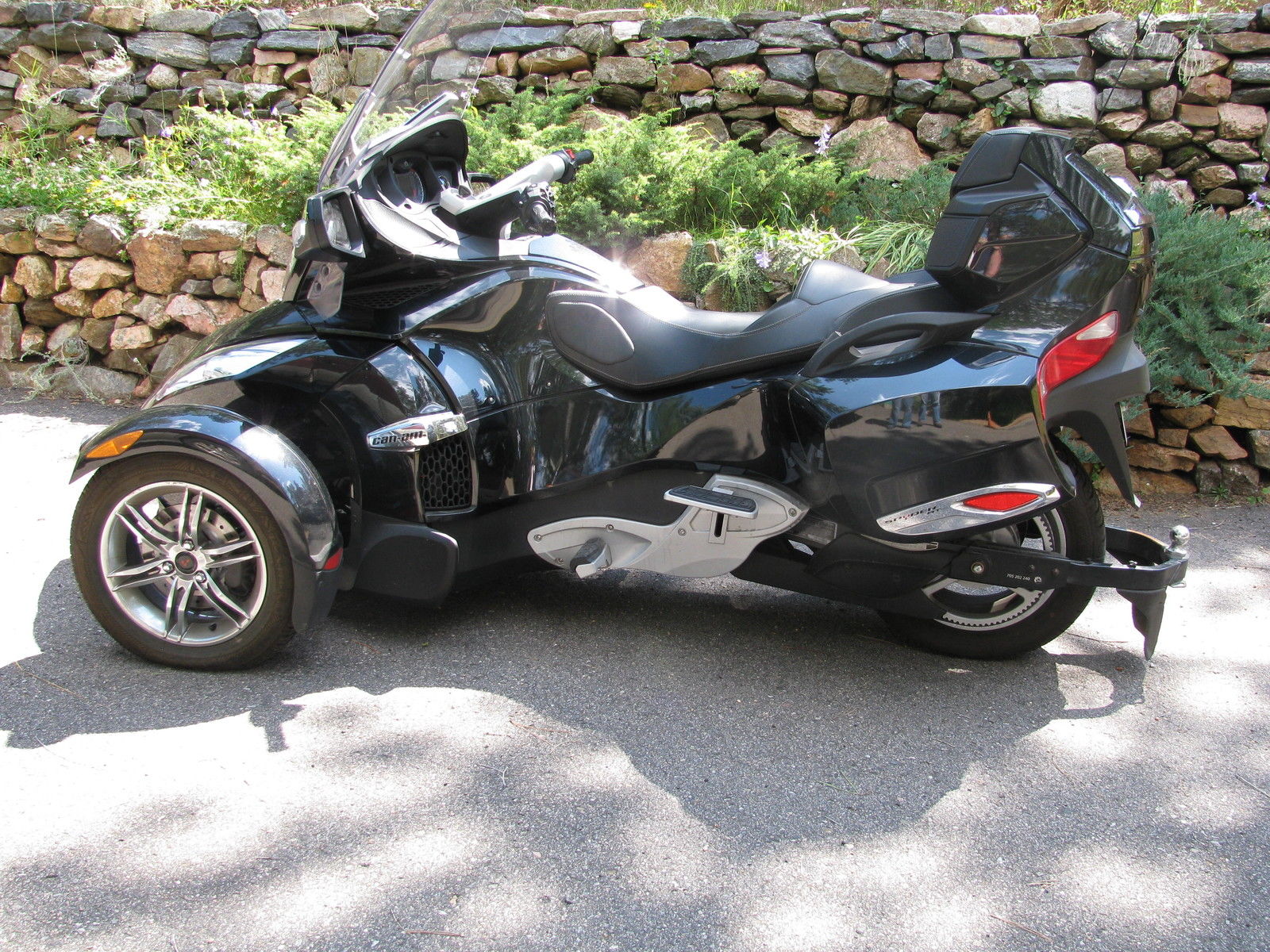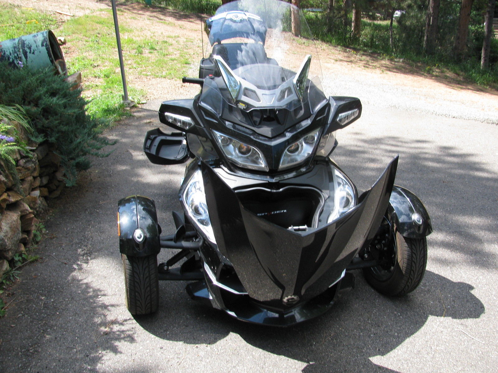 One owner. 2010 Can-Am Spyder RT. immaculate condition. virtually every option available including a trailer hitch (never used). Only 5913 miles. complete dealer service records. Black with Silver trim. Comes with cover. two silver helmets. one large "shoe" and one small "HJC" and two nylon padded riding jackets. one large and one small. Bike is located in Lakewood. Colorado 80228. Priced to sell at $15. 95. Call 303-980-5656. ask for Dick. No trades please.