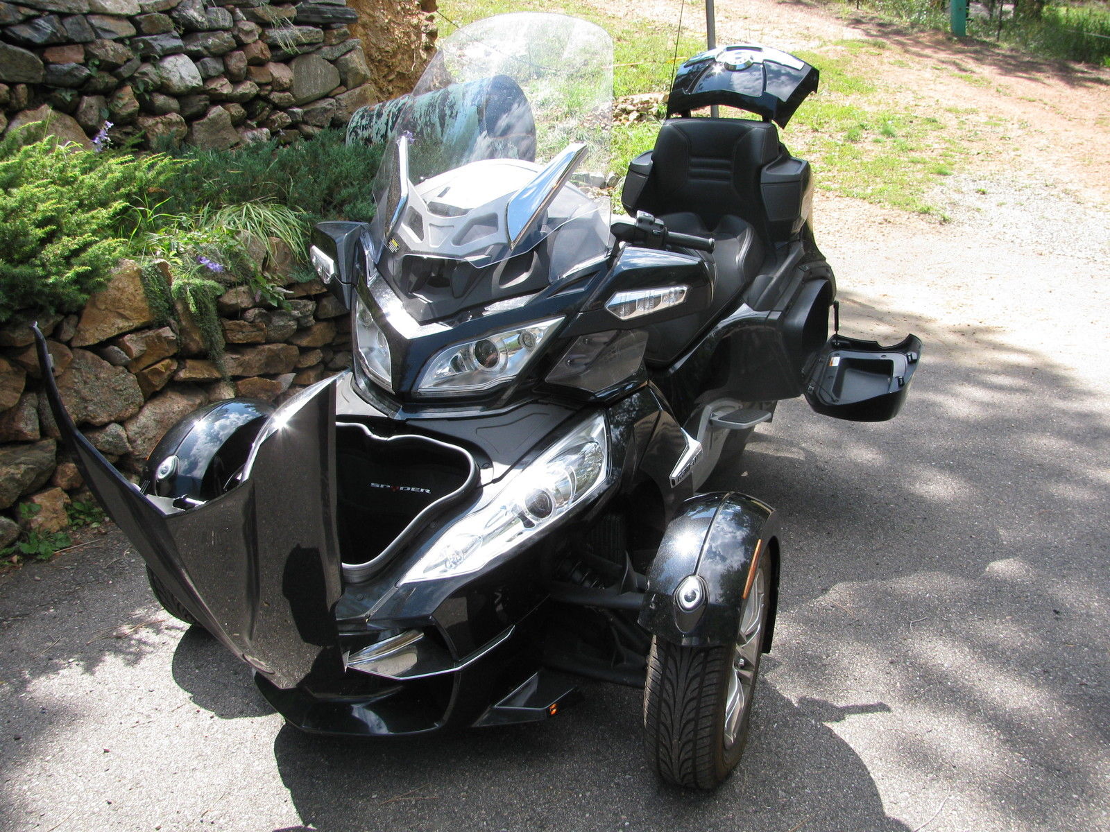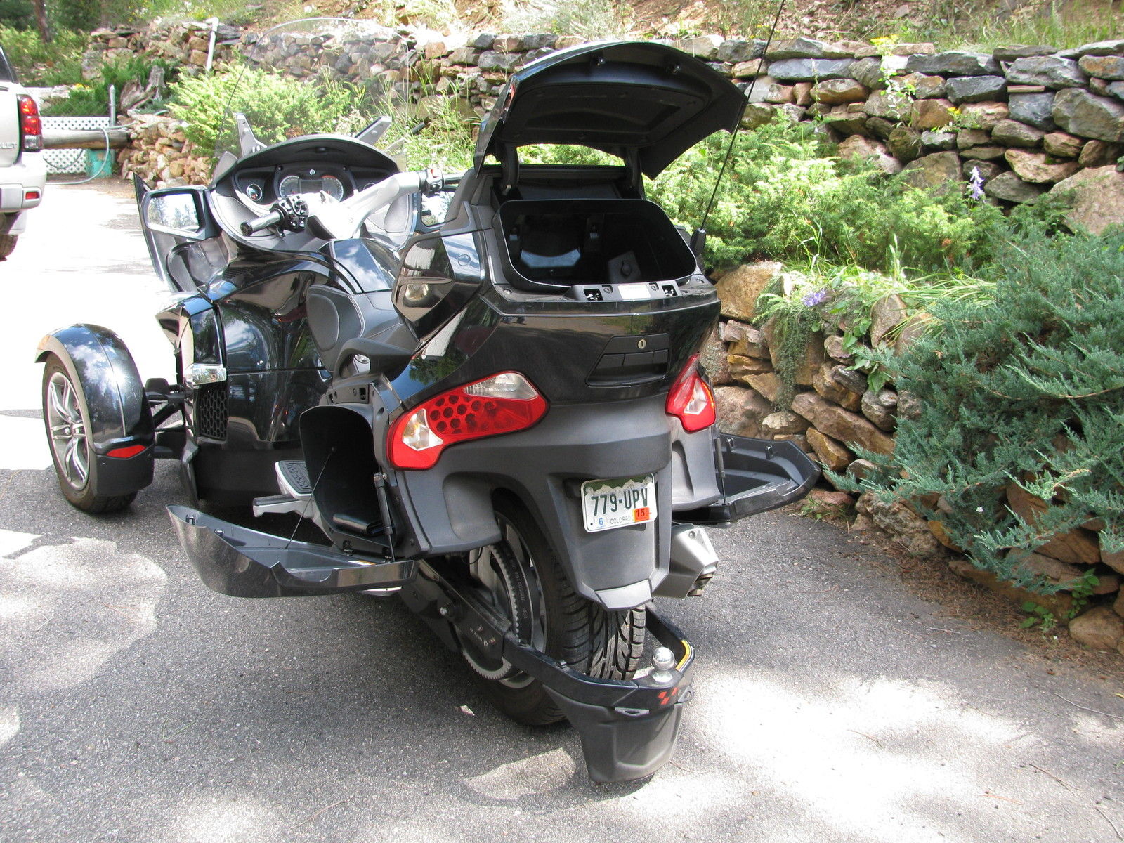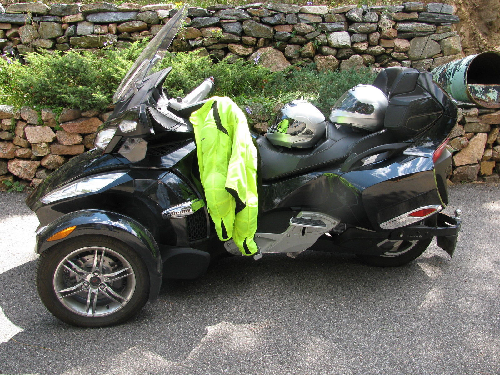 One owner. 2010 Can-Am Spyder RT. immaculate condition. virtually every option available including a trailer hitch (never used). Only 5913 miles. complete dealer service records. Black with Silver trim. Comes with cover. two silver helmets. one large "shoe" and one small "HJC" and two nylon padded riding jackets. one large and one small. Bike is located in Lakewood. Colorado 80228. Priced to sell at $15. 95. Call 303-980-5656. ask for Dick. No trades please.