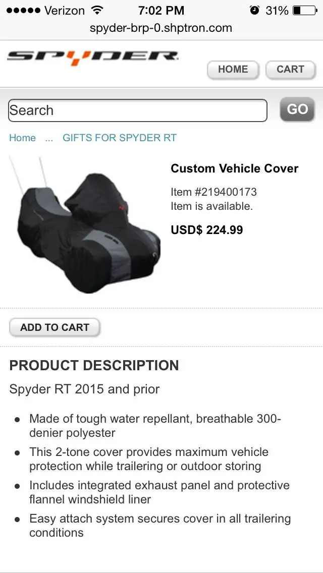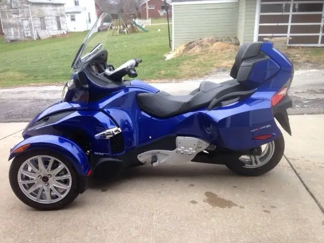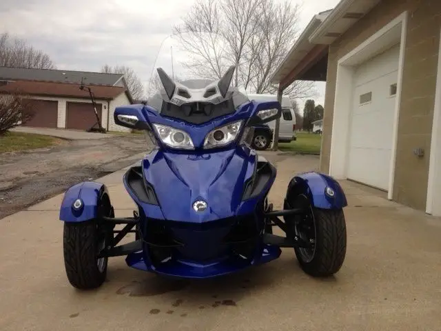 2013 Can-Am Spyder RT Audio/Convenience Semi Automatic. Quantum Blue Metallic color. Ipod/Iphone cable in rear. Radio. heated hand grips. cruise control. traction control. and electric adjustable windshield among other things. Purchased brand new in July of 2013. Only has 451 miles. Comes with a Can-Am custom vehicle cover. Great for storing or trailering. They are $225 from Can-Am. The bike has a two year manufacturers warranty on it and the Emergency Roadside Assistance Coverage doesn't expire til July 2017. It also has a BRP Extended Service Terms Plan that doesn't expire until July of 2017 as well. The bike is in excellent shape. No dents or scratches. Hasn't been wrecked. Stored in a temperature and humidity control garage. I love it but my money needs to go towards something else now. Title in hand. The spots on the concrete is water from me washing it. Pick up only. It is for sale locally also so buyer has right to end listing at any time.