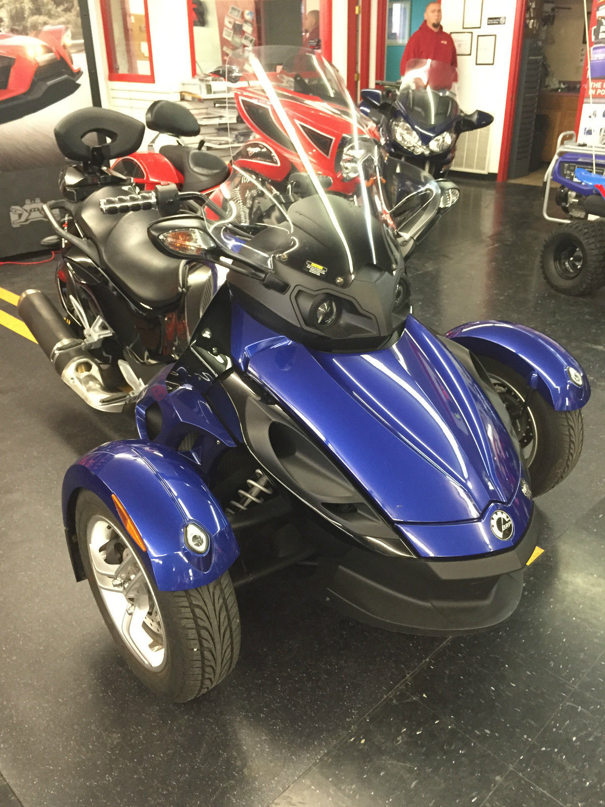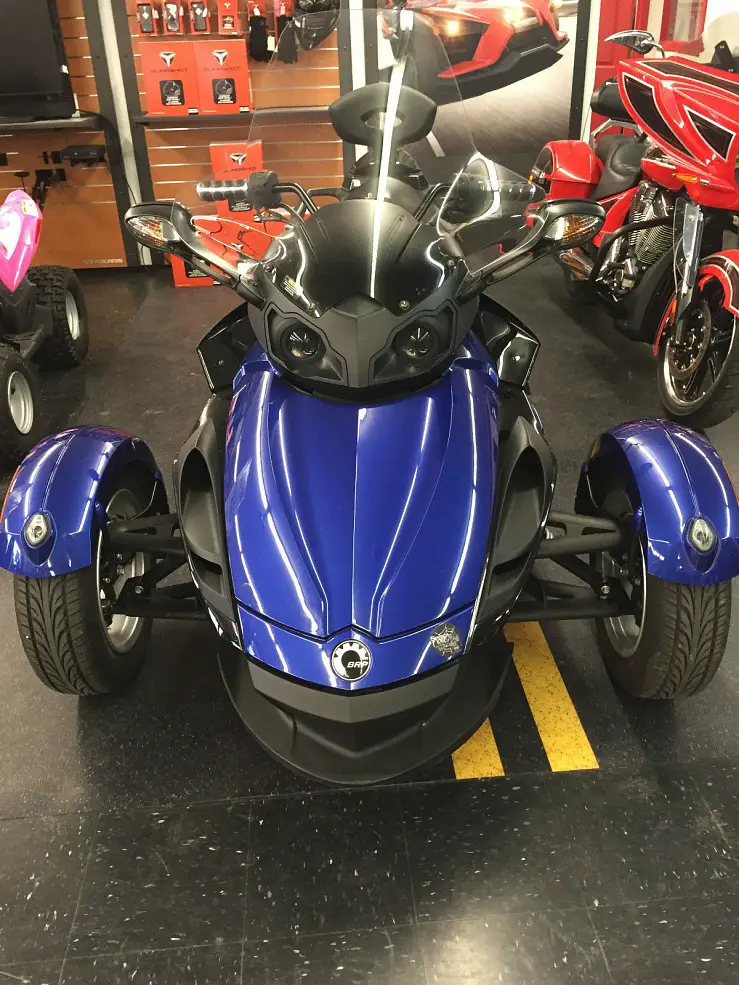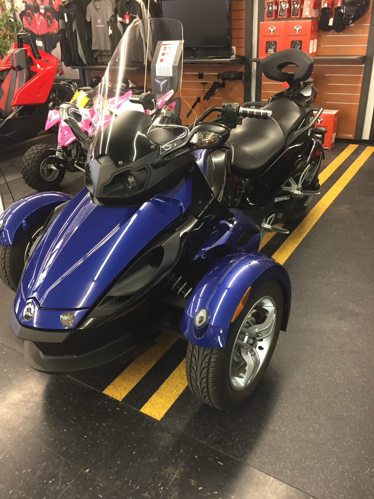 2010 Can-Am Spyder RS SE53. 19 Original MilesOrbital BlueGreat ConditionIncludes tall windshield. floorboards. and passenger backrest. IDENTIFICATIONType: Sport-TouringWarranty (Months): 24Revision Status: CarryoverENGINEDisplacement (cc): 998Engine Type: V TwinCylinders: 2Engine Stroke: 4-StrokeValve Configuration: DOHCCarburetion Type: Fuel InjectedTRANSMISSIONTransmission Type: AutomaticNumber of Speeds: 5Primary Drive System: BeltBRAKESFront Brakes: Dual Hydraulic DiscRear Brakes: Hydraulic DiscTIRESFront Tire(s): KR21 165/65 R14Rear Tire(s): KR21 225/50 R15SPECIFICATIONSWheelbase (in / mm): 68 / 1727Dry Weight (lbs / kg): 699 / 317. 1Fuel Capacity (gal / L): 6. 6 / 25Seat Height (in / mm): 29 / 737Number of Seats: 2FEATURESTachometer: StandardDigital Instrumentation: StandardWindshield: Standard
