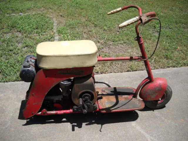 THIS 1946 Western Flyer Doodlebug is in original condition. I do not believe that it has ever been painted or restored. It has the NP Briggs engine and the General Jumbo Jr. Tires. The engine has good compression. The only things that I can see missing is the exhaust system and the gas tank bands. It has the original grips and everything seems to work ie. brakes, ickstarter and hand controls. There is no title for this bike but I will give a bill of sale. The mileage and title info listed above are incorrect but they make you put something in the slot to list it. The buyer is responsible for all shipping costs and shipping details. I will help where I can. Thanks for looking and good luck bidding. Cushman40