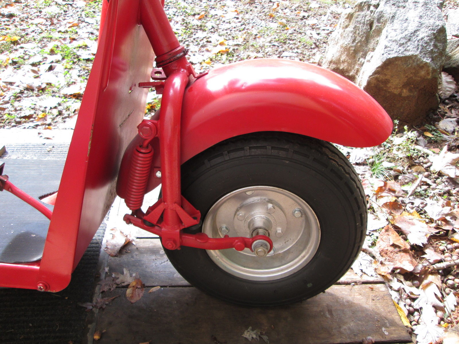 This is a 1958 or 1959 Cushman Highlander with an earlier model 8 hp engine. It has new wheels. tires. seat and other small parts. It runs great and is a blast to ride. It would be a great pit bike or parade bike or just a cool around town ride. There is NO TITLE and milage is unknown. It does need the wiring repaired or replaced and could use some fine tuning of the carb. Please look carefully at the pictures and ask questions before you bid. I also have another 1959 Highlander with the correct 4 hp engine that needs a little work to be ridable. I will give the buyer of the one on auction the option of purchasing it and all of the extra parts before I list it for sale. If you would like to talk on the phone about this scooter. please email me your phone number and a good time for me to call you. Thanks Steve