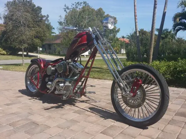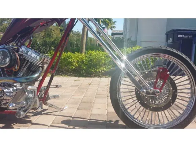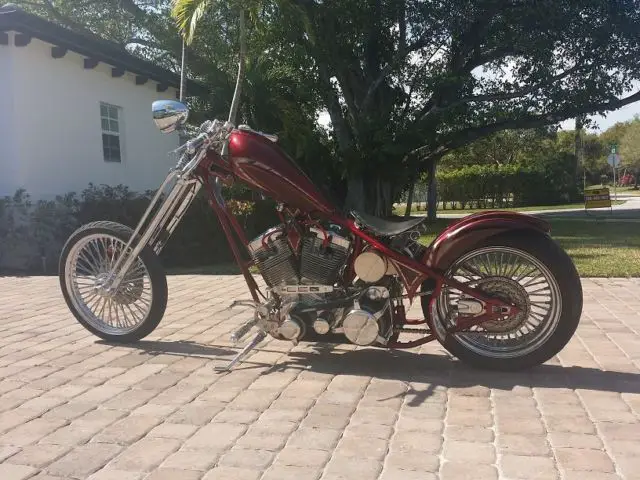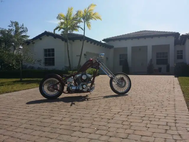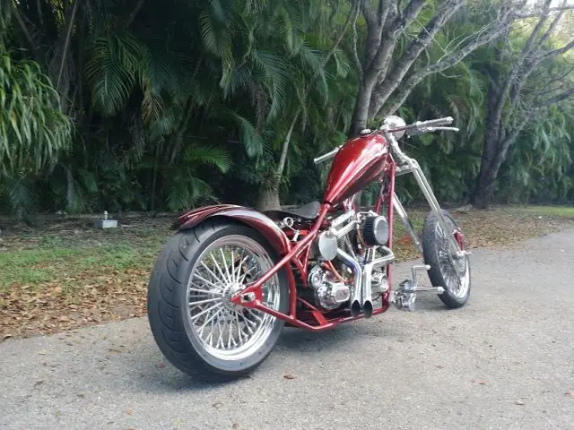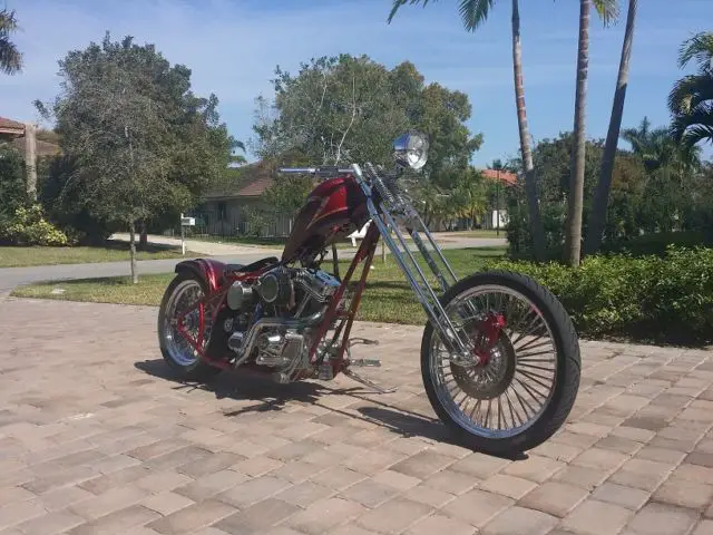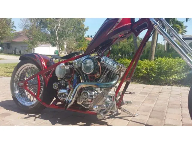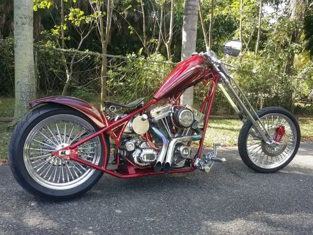 Up for bid is my raw design custom chopper is a new technology-"Old School" bar hopper. Very clean no accidents or daily driven is a garage king never driven on rain no mechanical or body problems is a turn key chopper i take very well care of it. Starts right away. It has an approximate 3400 miles and oil has been changed when its due . Attracts allot of attention and is unique no one else will have the same chopper. Specs : Ultima 113"ci full polished (1851 cc). Revtech polished 6 speed Transmission. Paughco frame. 38 degrees total rake ( 35* in frame + 3* cups). +6 Down Tube. 3" Backbone with Avon Venom 200/55/18 rear tire. Paughco +12" polished risers. Dynai ignition. Super E Carb with thunderjet 3rd circuit kit. LAF pipes. 3" BDL open primary with Mean Streets belt guard system and oil filter machined into the backplate. Spyke 1. 2kw chrome starter. WCC Villian gas tank w/ Spyke hi flow fuel petcock. Choppers Inc. Oil tank/batt box. Custom solo spring seat with CFL logo + 2" springs. 21" front and 18" rear - fat spoke wheels. Exel hydraulic hand brake control. Legends foot controls. Tolle rear sprotor system with chrome O-ring chain. All molded frame joints. ussets. ic plate mount and LED tail/brake lights into rear fender. The custom House of Colors candy paint job speaks for itself. This chopper has seen very little usage over the years but it is a rider and shows signs of it. There are minor scratches in paint but is very presentable and close to show. There is some small pitting in the chrome here and there. Overall it is in almost perfect shape. I can provide video upon request and if you have any questions please feel free to contact me. Shipping is up to buyer ! Thank you for looking and have a happy bid!