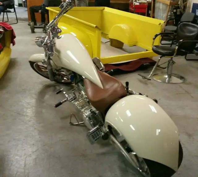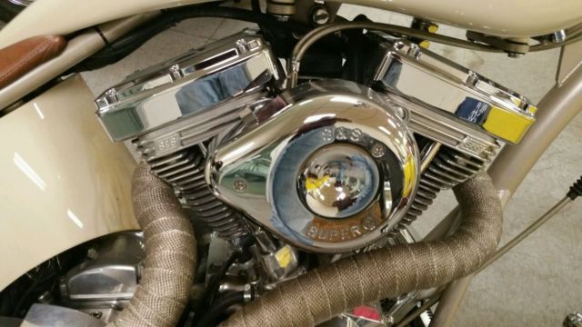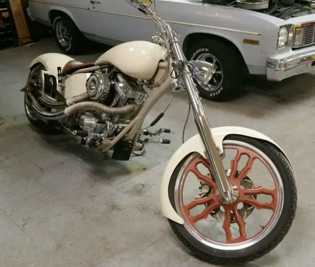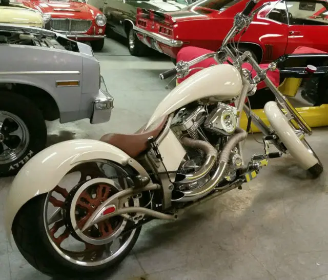 Like new Big Bear Choppers Devil's Advocate Chopper custom motorcycle - Chick Magnet! 103cu in S&S V-twin with Baker 6 speed transmission. Modified to accommodate pillion passenger. Only 3421 miles. Same as current 2014 model except the engine which are now 111ci and start at $43. 00! Cruise in style for only $16. 99 http://www. bigbearchoppers. com/dachopper. html Located at Bob Smith Motors - Owner's son's personal bike. Selling to put money into hot rod project - Perfect condition. S&S Motors are engineered for low vibration. Although this looks like a hard tail. the rear suspension does have a 3 inches of travel but it is not really a bike for very long road trips. PerformanceHorsepower (bhp): 95 bhpTorque (Ft Lbs): 110 lbsRedline RPM: N/A RPMTransmissionNumber Of Speeds: 6Transmission Brands: BakerTransmission Types: ManualTransmissionNumber Of Speeds: 6Transmission Brands: BakerTransmission Types: ManualSeatsSeat Height (mm): 584. 2Seat Material: LeatherSeat Type: One-PieceSuspension & SteeringFront Suspension Brand: N/AFront Suspension Type: Telescopic ForkRear Suspension Type: Twin Sided Swing ArmFront Adjustable Fork Pre-Load: NoFront Adjustable Rebound Damping: NoFront Central Suspension Strut: NoFront Suspension Type: Telescopic ForkNumber Rear Shock Absorbers: 2Rear Suspension Brand Name: ProgressiveRear Suspension Type: Twin Sided Swing ArmRear Travel (in): 3Rear Travel (mm): 76. 2Steering Damper: NoFuel Tank Capacity: 6 GallsFrom The Big Bear Choppers website: "The Devil's Advocate Chopper has proven itself in the American big-twin market with its great handling. style. reliability and high-end components. The frame has a 6" stretched single radius downtube to give it a chopper stance. The Devil's Advocate Chopper is perfect for if you're looking for a wide tire. chopper-style motorcycle with incredibly clean lines at an affordable price. Standard components include the proprietary low vibration V111™ polished engine in front of a Baker 6-speed overdrive transmission. exclusive primary drive. chrome front end and controls. and so on. This chopper handles remarkably well due to our extensive R&D. Our frame and front end calculations are 'to the tee' with the final trail measurement. resulting in no front end flop or high speed wobble. The Devil's Advocate Chopper was designed to feel good in the saddle. So you can have your style and ride it too. " 2015 model spec - 2009 is pretty much the same except for the engine which is 103ci not 111ci. Design Features• Distinctive large diameter single radius downtube• Tall Chopper style neck height with an obtainable yet appealing 40° rake• Low seat of 23. 5” that enables low speed confidence and maneuverability• Flowing oil tank and rolling fenders finish with an exaggerated tip• Sleek large capacity tear drop style fuel tank• Famous patented Venom™ arched swingarm• Stylistic and ergonomically sound handlebarsComponent Features• 103ci S&S Low Vibration Polished Engine• 6-Speed Baker Right-Side Drive Polished Transmission• BBC Enclosed Primary Drive• Forged Billet Wheel Choice with 21” Front and 280mm Rear Tire• 4-Piston Brakes with Rear Belt Drive-Side™ BrakeSystem• Chrome Frontend with Hidden Axle Design• Chrome Foot and Hand Controls• Chrome Digital Dash• Chrome Radius Tuned Exhaust Factory Options• Optional Redemption Tank• BDL Open Belt Drive• Wheel Design Choice • Chrome Wheels and Brake Calipers• Standard or Custom Paint SchemeThe 2009 machines came with the company’s proprietary low-vibration Smooth 1. 38. 7cc. air-cooled. four-stroke V-twin engine made by S & S. paired with a Baker Drivetrain six-speed manual transmission. Weighing in at 700 pounds dry. these nine-foot-long (the Chopper is four inches longer than the ProStreet and the Two Up) machines have telescopic front forks and Progressive twin-sided swing arm rear suspension. Disc brakes in front and back provide stopping power. They came from the maker with Metzeler tires. with a wide 300mm on the rear. With a 40-degree rake and a six-inch backbone stretch. the Devil’s Advocate—all three models—sport classic chopper styling. though the ProStreet is supposed to provide an easier-going. more comfortable and manageable ride. In fact. the company boasted that it was the most agile of all its motorcycles. The Two Up. as the name indicates. has a second seat. with a backrest. for a passenger. The 5. 9-gallon fuel tank is an essential style element. shaped to lead elegantly toward the low 23-inch seat. where it arrives in a point. Read more: http://www. motorcyclistonline. com/2009/big_bear_choppers/devils_advocate/05/#ixzz3UZkvhXuG2009 Big Bear Choppers Devils Advocate SpecsModel: Devil’s Advocate Chopper/Devil’s Advocate ProStreet/Devil’s Advocate Two UpEngine Type: S&S 1638. 7cc air-cooled V-twin four-strokeBore and Stroke: 4 inches x 4 inchesCompression ratio: N/AValve Train: OHV - pushrodInduction: S&S Super E carburetorIgnition: ElectricTransmission: Six-speed manualFinal Drive: BeltFuel Capacity: 5. 9 gallonsEstimated Fuel Economy: N/ABrakes (Front): DiscBrakes (Rear): DiscSuspension (Front): Telescopic forkSuspension (Rear): Progressive twin-sided swing armWheelbase: 83 inches (Chopper and ProStreet); 80 inches (Two Up)Rake: 40 degreesTrail: N/ASeat Height: 23 inchesCurb Weight: 700 poundsTires (Front): 90 R21Tires (Rear): 280 R18Keywords: Harley. Harley-Davidson. S and S. S & S. Big Bear Choppers. Chopper. custom. motorcycle. 103cu in. Phantom. Precision frameworx. Saxon. Ultra. Kraus. Alen Ness. Vengeance Performance. Chopper city. Big Tony's. Demon Cycle. Big Dog Motorcycle. Severe Cycles. Silver wraith. Rods and rides. X-customs. O-School. Springers. Orange County Choppers. New York City choppers. T-n-A Custom. Kendall Johnson. V* Choppers. Covingtons customs. Rullo. Three two choppers. Lucky Devil Custom. Beast Cycle. Custom services. Iron Horse. BMC. Boss Hoss. Bourget. Hellbound steel. Independe
