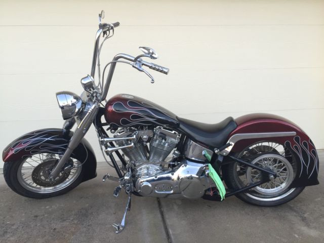 One of a kind custom softail ape hangers custom metal flake paint Arlen Ness exhaust forward controls custom grips and pegs dual airhorns steel braided lines completely rebuilt ready to ride all receipts available make an offer!