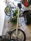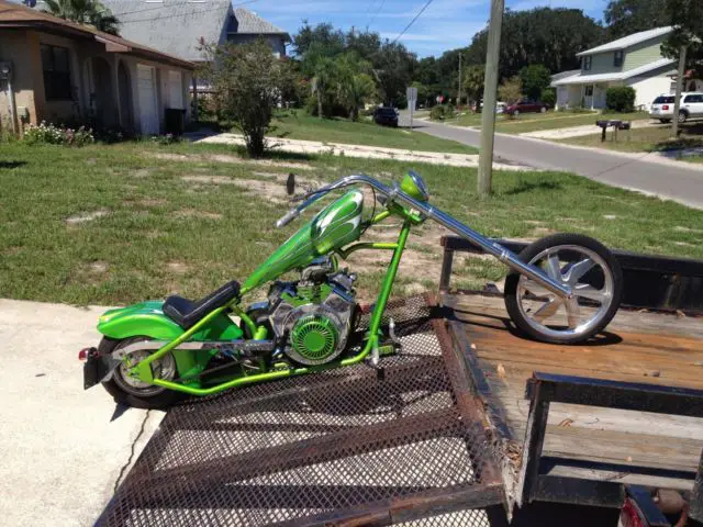 this is a custom mini bike. like none you've ever seen. 16 hp Briggs and Stratton with straight pipes. custom front wheel. custom tank. too many one off parts to list. this bike turns heads. it could use a little work. the chrome is starting to rust. it needs an oil and filter change. arb cleaning. fuel change. tank cleaning basic tune up. but its a garage kept piece of awesome. there are no gears to shift. it has a torque converter so just twist the throttle and go. electric start. and pull start. it MAY be licensed in your state. I don't know you have to check that out. I am not stating one way or the other. I am selling it as NOT STREET LEGAL. but its a ton of fun. I simply need the garage space and I have too many toys.