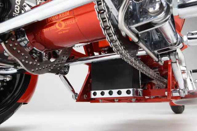 "ROLL-X"Incredible opportunity to buy a bike built by a legend. Doug Keim no longer is building and the only way to get a bike like this is to find one for sale. Luckily for you the owner of this bike is selling because he is getting out of riding. This bike has been lovingly cared for and kept in a climate controlled environment its entire life. It has always received the best care and service for the whopping 730 miles it has been ridden. Here is your chance to buy a machine like no other at a fraction of the build cost of $250. 00!!!!!!! Dont miss your chance!!!!!! More photos are available on the builders website. Creative Custom Cycles. Spec SheetSHOP/BUILDER NAME – Doug Keim Creative Cycles. Inc. / Creative Motor Co. . LLCSYEAR/MAKE/MODEL – 2008 Creative Cycles ‘Roll-X’FABRICATION – Doug Keim / Rick Froelich / Jon LittleASSEMBLY – Doug Keim / Rick FroelichBUILD TIME – 23 months ENGINE:YEAR/MANUFACTURER – 2008 S&STYPE/SIZE – EVO / 96”BUILDER – S&S / Creative CyclesCASES – S&S polishedCYLINDERS – S&SHEADS – S&S with mild head workROCKER BOXES – S&S CARBURETOR/EFI – S&S with ThunderJetAIR CLEANER – Yep… cool too EXHAUST – Hand Crafted 2 into 1 by Creative CyclesEXTRAS – Cam has been swapped to better performing unit TRANSMISSION:YEAR/MANUFACTURER/TYPE – 2008 Baker DD6 6 speedCASE – Baker polished CLUTCH - BanditPRIMARY DRIVE – RMD / DKCC (Doug Keim Creative Cycles) FRAME:YEAR/MANUFACTURER – 2008 Creative Cycles by PSFWRAKE - 40 degreesSTRETCH – front +6 out / leg 0 up / rear +5 out SUSPENSION:MANUFACTURER FRONT - MSPLENGTH – 42” 41mmTRIPLE TREES - MSPMANUFACTURER REAR – Koni (4)SWINGARM – hand crafted . 219 wall tubing by Creative Cycles WHEELS. TIRES. AND BRAKES:MANUFACTURER FRONT/TYPE – RMD one-off multi piece billetSIZE-HEIGHT/WIDTH - 21 x 3. 5TIRE/SIZE – 120/70x21CALIPER – PM 6 pistonROTOR – 11. 5” RMDMANUFACTURER REAR/TYPE – (2) RMD one-off multi piece billet with ‘one off’ center capsSIZE-HEIGHT/WIDTH – a pair of 10. 5x18’sTIRE/SIZE – a pair of 280x18’sCALIPER – single in-board mounted Wilwood auto racing caliper ROTOR – single in-board mounted 12” vented disc FINISH/PAINT:COLOR – Crusty copper candyPAINTER – Chip APWGRAPHICS – understated pinstripes and reverse ‘real fire’ PLATING/POLISHING – Don Malloy / Creative CyclesPOWDERCOAT - none ACCESSORIES:FRONT FENDER – Creative Cycles REAR FENDER – (2) Creative Cycles / Jon LittleFENDER STRUTS – internally supportedGAS TANK&CAP – hand crafted steel split tanks Jon Little / Pro-Werks caps OIL TANK – DKCCGAUGES – Dakota Digital on barsHANDLEBARS – Creative CyclesMIRRORS - NessHAND CONTROLS – PM with Creative Cycles ‘The Grip’ gripsFOOT CONTROLS – PM with Creative Cycles ‘The Peg’ pegsFOOTPEGS – Creative Cycles ‘The Peg’HEADLIGHT – Alloy Art on Creative Cycles mountTAILLIGHT – Todd’s Cycle LED Martini Glass (4)TURN SIGNALS – in tail lampsLICENSE MOUNT – Creative CyclesSEAT – Seat Richie @ Creative Cycles (complete under seat area covered in leather)SADDLEBAGS – hand made storage under seat and in sissy bar bagSADDLEBAG LATCHES - hidden