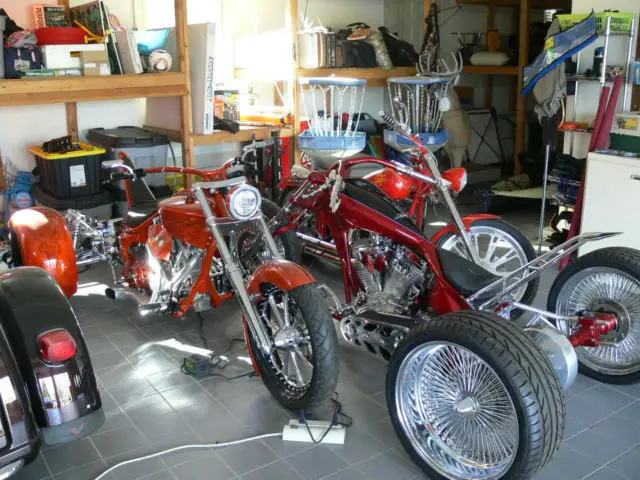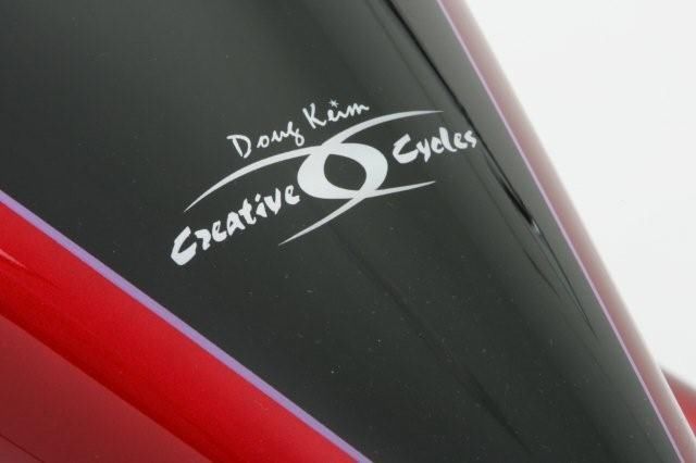 "DOO-WOP"Incredible opportunity to buy a bike built by a legend. Doug Keim no longer is building and the only way to get a bike like this is to find one for sale. Luckily for you the owner of this bike is selling because he is getting out of riding. This bike has been lovingly cared for and kept in a climate controlled environment its entire life. It has always received the best care and service for the whopping 730 miles it has been ridden. Here is your chance to buy a machine like no other at a fraction of the build cost of $220. 00!!!!!!! Dont miss your chance!!!!!! More photos are available on the builders website. Creative Custom Cycles. Technical Data Builder ADDRESS: NAME/COMPANY: Doug Keim Creative Cycles / Creative Motor Co WEBSITE: www. dougkeim. com OR www. creativecycles. com BIKE NAME: TYPE/YEAR: NAME: “Doo-Wop” 2007 DKCC (Doug Keim Creative Cycles) handcrafted one-off trike BUILDER: DKCC OWNER: Michael Schubiger ENGINE: BUILDER/MANUFACTURER: Doug Keim Creative Cycles / TP Engineering YEAR: 2007 DISPLACEMENT: 107 cubic inches CYLINDERS: DKCC/ TP PISTONS: Wiseco forged CYLINDER HEADS: DKCC / TP VALVES: Manley CRANKCASE: TP Engineering CRANK: TP RODS: R&R Cycle CAM(S): Crane LIFTERS: Jim’s PUSHRODS: TP PUSHROD-COVERS: Sumax IGNITION: DKCC / Nology OIL SYSTEM: DKCC CARBURETOR: Mikuni HSR 45 AIR CLEANER: Handcrafted by DKCC EXHAUST-SYSTEM: Handcrafted 2 into 1 by DKCC OTHER SPECIALS: Just look… it is just about all hand crafted TRANSMISSION: BUILDER: Baker YEAR: 2006 PRIMARY DRIVE: BDL TF 2000 with “auto clutch” CLUTCH: Bandit OTHERS: Custom made reverse gear with right hand shifter CHASSIS: FRAME (BUILDER): DKCC ICON – Doug Keim YEAR: 2006 MATERIAL: DOM tubing RAKE/STRETCH: 47 degrees total with trail correction / front stretch is 5 inches. rear stretch is 4 inches. leg stretch is 0 inches MODIFICATIONS: Chassis entirely handcrafted one of a kind. Entire rear swing arm assembly is handcrafted FRONTEND: custom made by Mean Streets for DKCC TRIPLE TREES: MSP / DKCC FORK TUBES: MSP / DKCC SWING ARM: handmade to accommodate trike rear end assm REAR SHOCKS: Legends air ride WHEELS (FRONT): hand laced 21” X 3. 5” (REAR): hand laced 20’s BRAKES (FRONT): PM 6 piston (REAR): DKCC / Brembo (tons of machine work needed to make it work on this application) ACCESSORIES GAS TANK: DKCC handcrafted from sheet steel – NO fillers have been used in its fabrication! OIL TANK: DKCC handcrafted FENDERS: NONE per client request (wanted that early hot rod look!) HANDLEBARS: DKCC handcrafted RISERS: part of bars SADDLE/SEAT: DKCC custom made with Stingray insert HAND CONTROLS: PM Contour HAND GRIPS: PM FOOT CONTROLS: handcrafted DKCC with UMI Racing pegs ELEKTRIC SYSTEM: DKCC / Drew Houseworth TAIL LIGHT: Ness / DKCC HEAD LIGHT: Headwinds INSTRUMENTS: Ness on left side of seat post tube MIRRORS: DKCC FAIRING: Oh Yeah! PAINTER: Bob Schroeter / Dragon Studios COLOR: Candy red with gloss black on top
