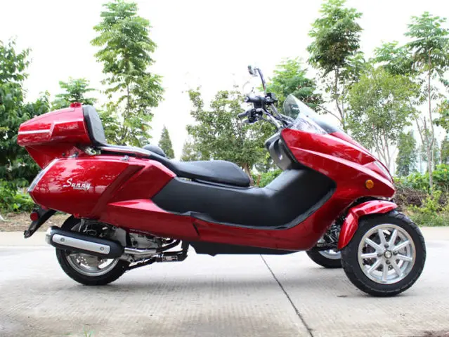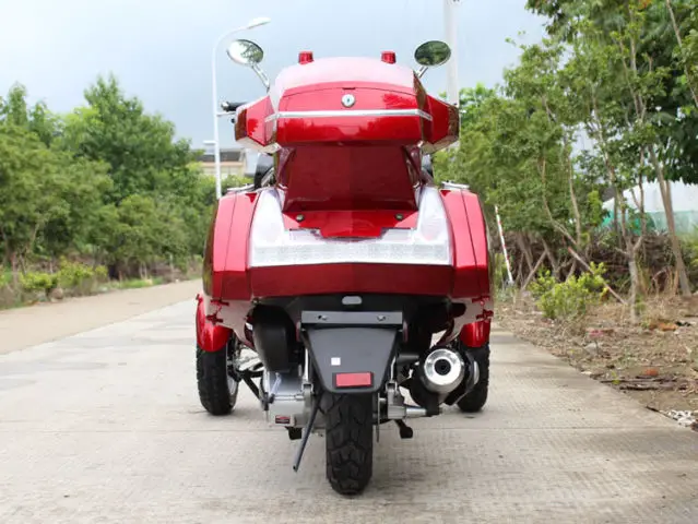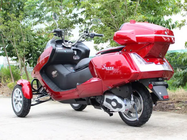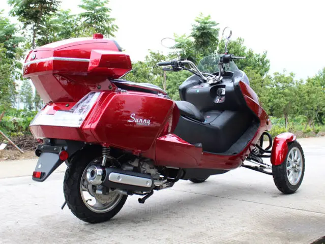 Enhanced Headlights:This innovative 300cc reverse Trike features enhanced headlights with low beam - high beam. These headlights are bigger and provide light at angles that most mopeds cannot support.
