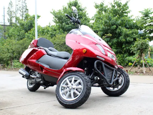 SpecificationsEngine Type300cc 4-StrokeCooling SystemLiquid-CooledMax Horsepower18.5Transmission/ClutchCVT AutomaticNumber of GearsN/AFinal DriveBeltStarting SystemElectricIgnitionCDIMax Speed90 (+/-5 MPH Depending on Riders Weight and Road Conditions)Max Torque17 ft. lbs @5500 RPMBattery12V/9AhFuel Capacity2.4 gallonsReverseNoFrameReinforced Steel TubeFront SuspensionDual IndependentRear SuspensionDual ShockFront BrakeLinked Brake SystemRear BrakeDisc BrakeFront Tire120/70/12Rear Tire130/60/13LightingHeadlight Front & Rear Turn Signals Tail Light Brake LightWeight Capacity450 lbsNumber of Riders2Dry Weight630lbsSeat Height31"Warrantyone year limited warranty on Engine and FrameAssemblyTwo front wheels front brakes fenders handle bars mirrors and trunk are some parts that are required to be assembled. Battery will need to be charged.RestrictionsNOT for sale in CA CT & NJ**For Shipments to Washington D.C. Maryland Massachusetts Maryland Florida New York Pennsylvania New Jersey Virginia West Virginia Maine Connecticut Vermont New Hampshire Rhode Island; an additional freight charge of $75 up to $175 is required for two-wheel models and $100 up to $250 for all three-wheel models . For Hawaii and Alaska the additional freight charges will be from $575 up to $1250 depending on the model of choice. Please email or contact us by phone for shipping rates prior to placing your order. Items that offer free shipping do not pertain to any of the above named states.Also published at eBay.com