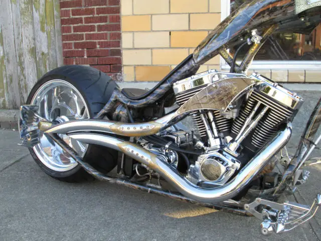 This bike is a newly built chopper with only 50 test miles. There's over $31K in the bike. Frame is a one off custom built with a 300 series Avon tire on the back and a 21" on the front with front and back matching custom wheels.