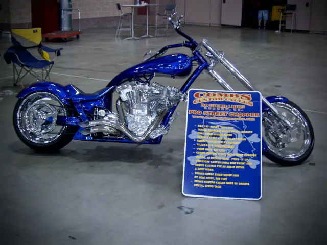 COMBS CUSTOM CYCLES PRO-STREET CHOPPER"ONE OF A KIND" CUSTOM BUILT CHOPPER 2005 DAYTONA BEACH "RATS HOLE" CLASS WINNER FEATURED IN HOT BIKE MAGAZINE CALENDER BIKE AND NUMEROUS PUBLICATIONS. ONLY DRIVEN AROUND TOWN OR INTO SHOWS. OVER $80000.00 INVESTED R&R 147" BILLET TWIN CAM "V" CONFIGURATION SUPERCHARGED SHOW POLISHED MOTOR TWIN MIKUNI CARBS BAKER 6 SPEED TRANS 4' OPEN BELT DRIVEAIR RIDEDUAL DISC FRONT HIDDEN CALIPER FRONT BRAKESSINGLE SIDED SWING ARM RC COMPONENTS WHEELS280 REAR TIRECUSTOM PAINT AND GRAPHICS !!! * PRO STREET FRAME * DUAL BEARING SINGLE SIDED SWING ARM * FAT KATZ METAL * R&R 147" TWIN CAM MOTORSHOW POLISHED * MAGNACHARGER SUPER CHARGER * TWIN MIKUNI 45MM CARBS * AMERICAN SUSPENSION "PHANTOM" DUAL DISC FRONT END * 42 DEGREES OF RAKE * 7 INCHES OF STRETCH OUT * 5 INCHES UP * 4 "OPEN BELT DRIVE * AIR RIDE * ARLEN NESS FOOT CONTROLS * PM HAND CONTROLS * BAKER 6-SPEED TRANS * HYDRAULIC CLUTCH * STAINLESS STEEL CREATIONS PIPES * 280 REAR TIRE * RC COMPONENTS WHEELS NO VISIBLE CABLES LINES OR WIRING EXTREME ATTENTION TO DETAIL SERIOUS INQUIRIES ONLY CALL JOE 973-390-3326