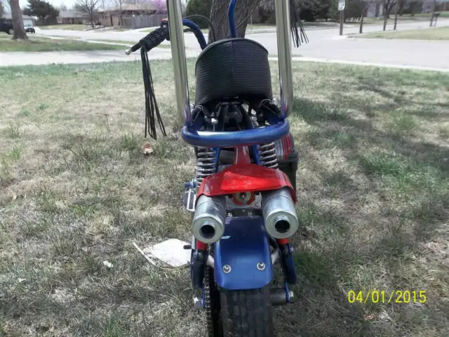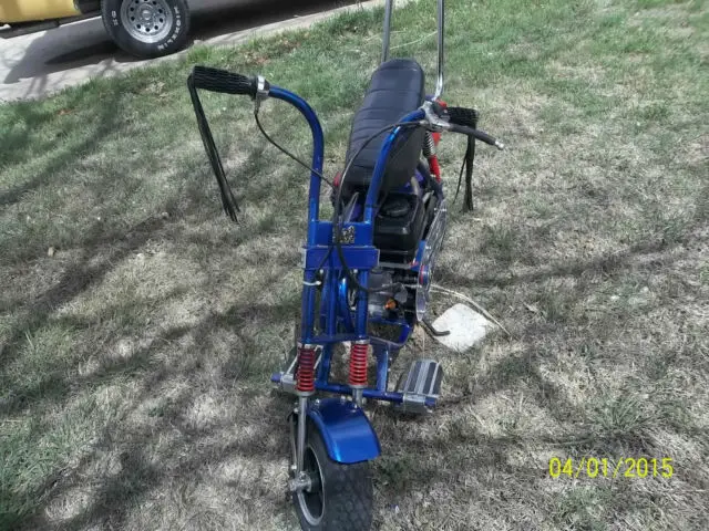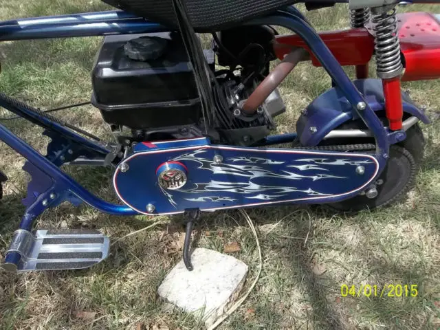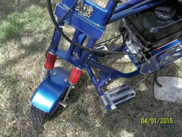 This bike was built just for fun from an old salvaged frame. It has a new Predator 212cc engine with very little running time. New tires and tubes and wheel bearings. It has a new chain.The brake is new seat is like new. The sissy barlogos and foot rest can be removed. The logos are of Autobot Transformers.This is a garage built mini bike. I am retired and I do these type things for the enjoyment. This is not a factory professional or Orange County bike build. This bike will have flaws the welding is not professional but in my opinion it will hold up. Like any two wheeled bike you should use caution. This bike is very fast small children should not ride this bike. I can not be responsible for injures. Please email me with your questions.