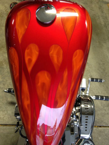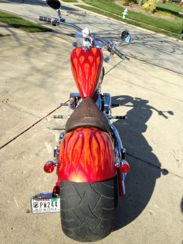 Saxon Griffin Received New January 2010 by Senior Citizen Mint Condition Never Down Softail Construction Flawless Paint Hell Fire Red with Candy Red Flames and Fire Vance & Hines Exhaust 111 CI S&S Motor (1819cc) Hydraulic Clutch 3 Custom Covered seats: Single Travel Seat with Extra Padding & 2 Passenger Seat w/ Backrest/Sissy Bar Storage Cover Mileage: 12500 New Invoice Price: $33640.00