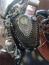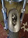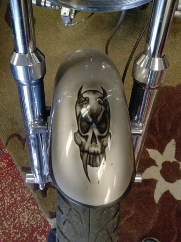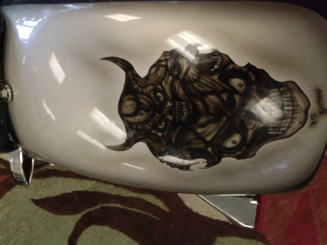 Demon skull, tone paint, and carved leather sea, of a kind in excellent condition!