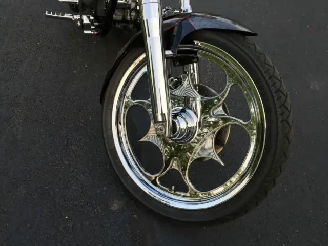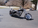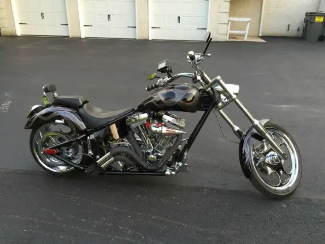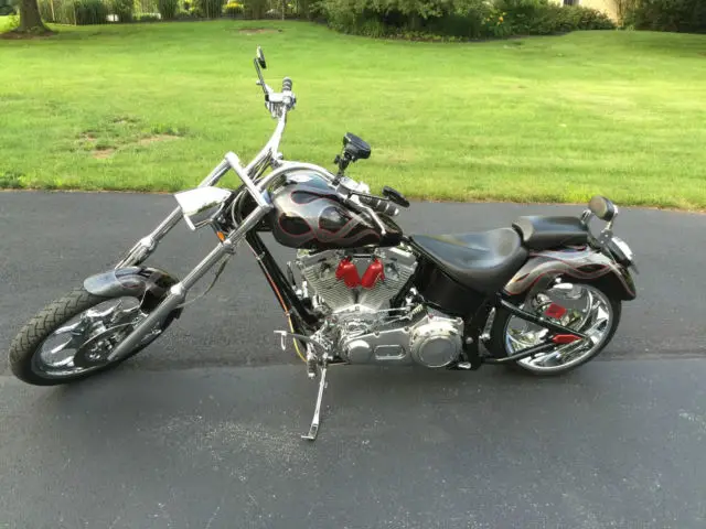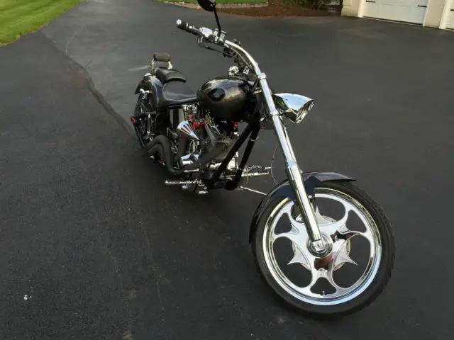 - 5" stretched backbone- 45 degree rake- 300 rear tire- 6 speed right side, elt drive- Harley EVO 1,340cc motor (only about 3,600 miles on the motor)- Harley controls- Avon heated grips- Softtail with Progressive air suspension- S&S carb- Pro1 aluminum wheels, rake calipers, ED license plate assembly, ontrols & other accessories- Riviera Engineering clutch- Wire Plus digital speedometer- Guard Dawg digital RFID keyless ignition (2 fobs)- Badlands self-cancelling turn signals- BackOFF brake light module- Everything chrome - no billet to keep polishing!- Service manual & other documentation included