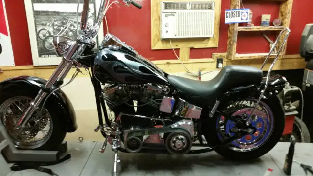 THIS CHOPPER IS IN PRISTEEN CONDITION. WHEN YOU RIDE IT ITS LIKE YOUR BEING PULLED ON A STRING . IT IS VERY BALANCED. IT HAS ALL BRAND NEW PARTS AND A VERY FRESH GOOD SOUND MOTOR. THE BREAK IN WAS DONE BY THE BOOK. THE MOTOR CONTAINS WISECO PISTONS AND THE HEADS HAVE BEEN DONE ALSO. IT CONTAINS A CRANE HI 4 IGNITION AND A CRANE 316 2 BGRIND CAM. IT HAS NEW RIMS, IRES, UAL DISC WID GLIDE FRONT END, OWDERCOATED PAUGHCO FRAME, HROME OIL TANK, HROME BILLET FORWARD CONTROLS, 6 INCH CHUBBY APES,CHROME HAND CONTROLS WITH JESTER MIRRORS, SPEED TRANNY, AMSON STREET SWEEPER PIPES, HROME SISSY BAR, USTOM PAINT, DL 3INCH BELT DRIVE. CUSTOM CHROME HEADLIGHT, LL BRAIDED CABLES AND BRAKE LINES. THIS MOTORCYCLE IS READY FOR THE ROAD AND NEEDS TO GO TO SOME ONE WHO WILL RESPECT IT. ITS A DREAM TO RIDE.