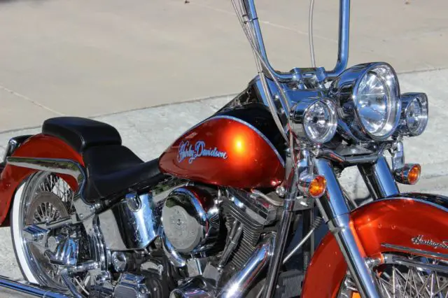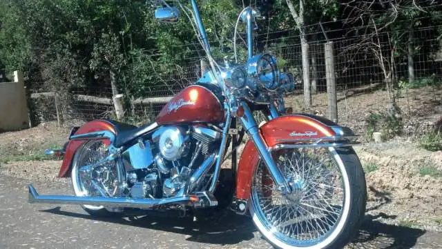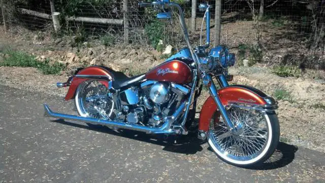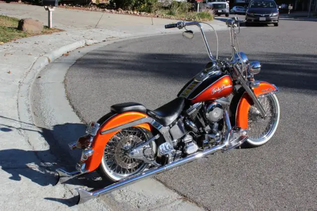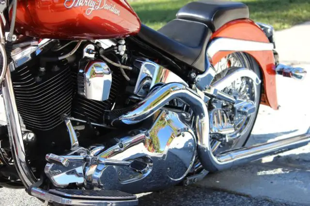 SELLING THIS CUSTOM BUILT FLSTN. A LOT OF EXTRA CHROME NOT JUST THE STANDARD TAPE ON CRAP. THE BIKE HAS 16" APE HANGERS WITH ALL CHROME BUTTONS AND BRAIDED CABLES. HAS A LEGEND AIR RIDE SYSTEM. THE BIKE HAS BEEN LOWERED 2" IN THE FRONT WITH A PROGRESSIVE LOWERING KIT AND A 21" WHEEL. CHROME SWING ARM AND TRUE DUAL SAMSON EXHAUST. CUSTOM PAINTED BY LEGENDARY HARRY SIGNS. THERE'S A TON MORE STUFF ON THIS BIKE AND COMES WITH SOME EXTRA PARTS. THIS BIKE IS SOLD AS IS WHERE IS AND I WILL ASSIST IF YOU DECIDE TO SHIP. BUYER IS RESPONSIBLE FOR ALL DMV AND SHIPPING FEES.