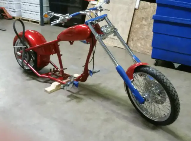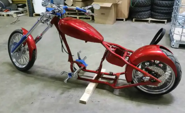 You are viewing a Brand New Custom Chopper. Powder Coated Orange with clear coat. Includes frame,wheels,tires,handle bars,front and rear turn signals,headlight,oil pan,battery holder.