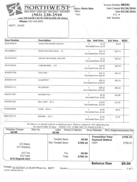 The radiator and brakes are in boxes. The significant Aprilia parts go with it--front forks, nstruments, eadlight, ront mag wheel and disk brakes. Manuals for the Scarabeo and Can-Am Spyder are included. This is a roller. I will box up all the parts put them with the rolling chassis so it can go by motor freight. Check Reliable. They do a good job.